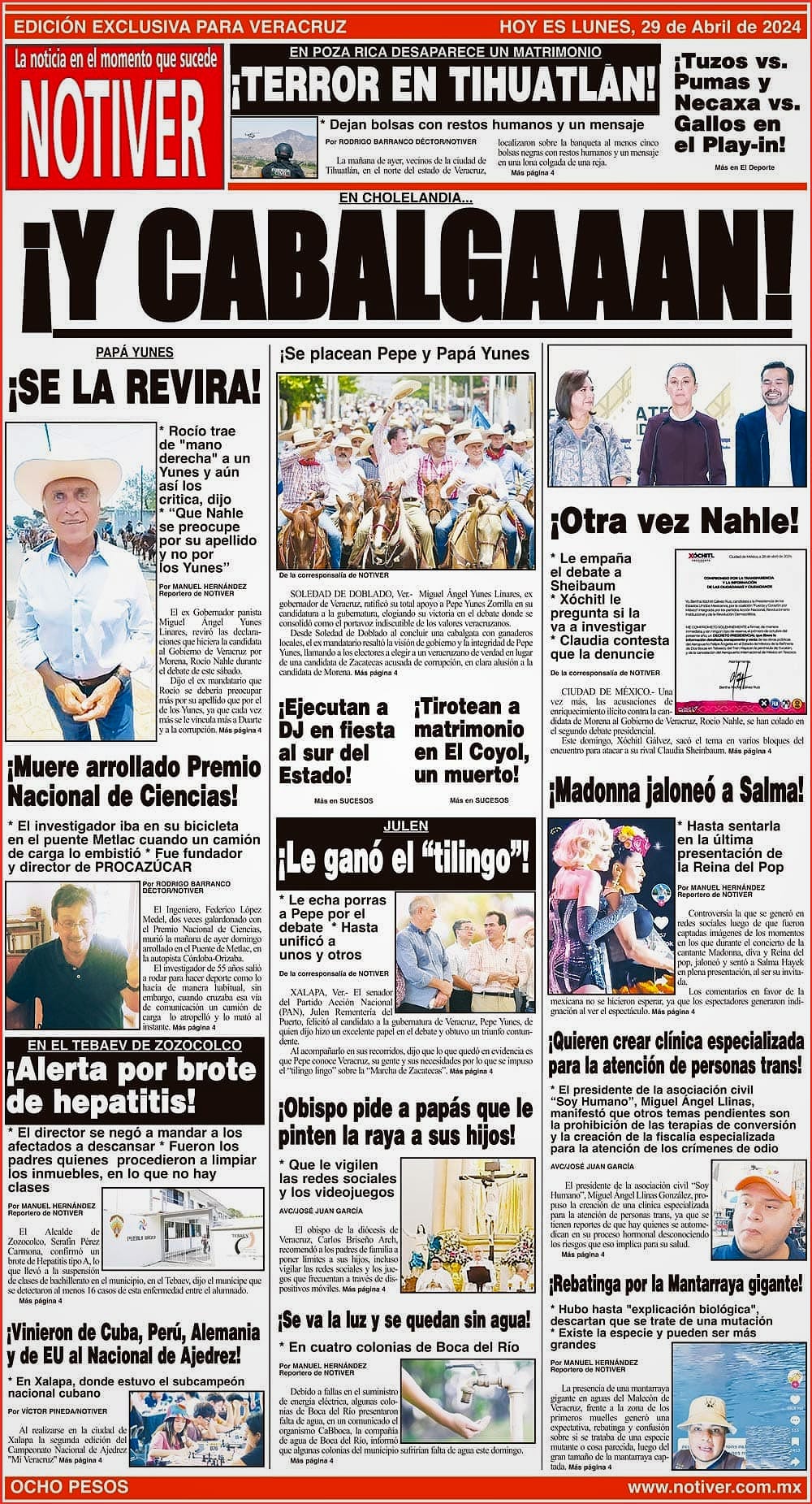 PRIMERA LA PORTADA - LUNES 29 DE ABRIL 2024 EN CHOLELANDIA... - ¡SE PLACEAN PEPE Y PAPÁ YUNES! 29 abril 2024 Y LOS ANUNCIOS...