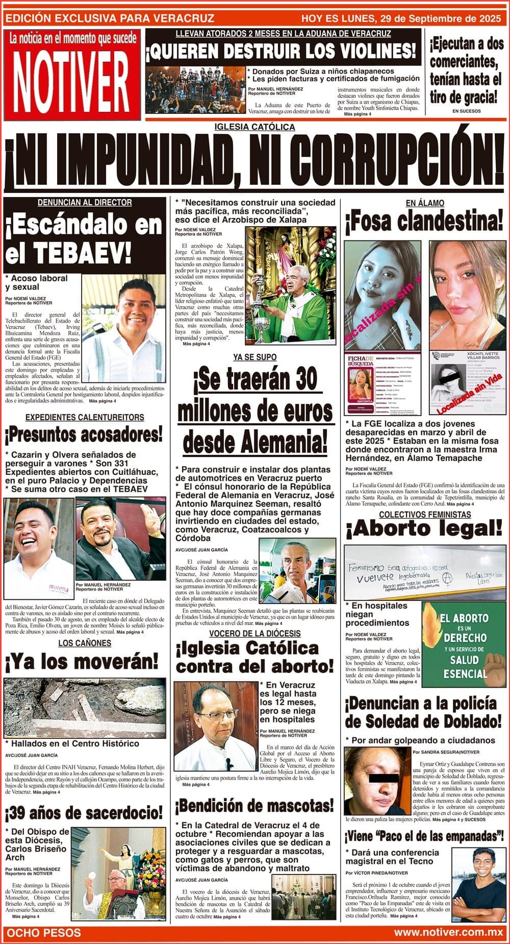 PRIMERA LA PORTADA - LUNES 29 DE SEPTIEMBRE 2025 IGLESIA CATÓLICA | - *"NECESITAMOS CONSTRUIR UNA SOCIEDAD MÁS PACÍFICA, MÁS RECONCILIADA”, ESO DICE EL ARZOBISPO DE XALAPA 29 septiembre 2025