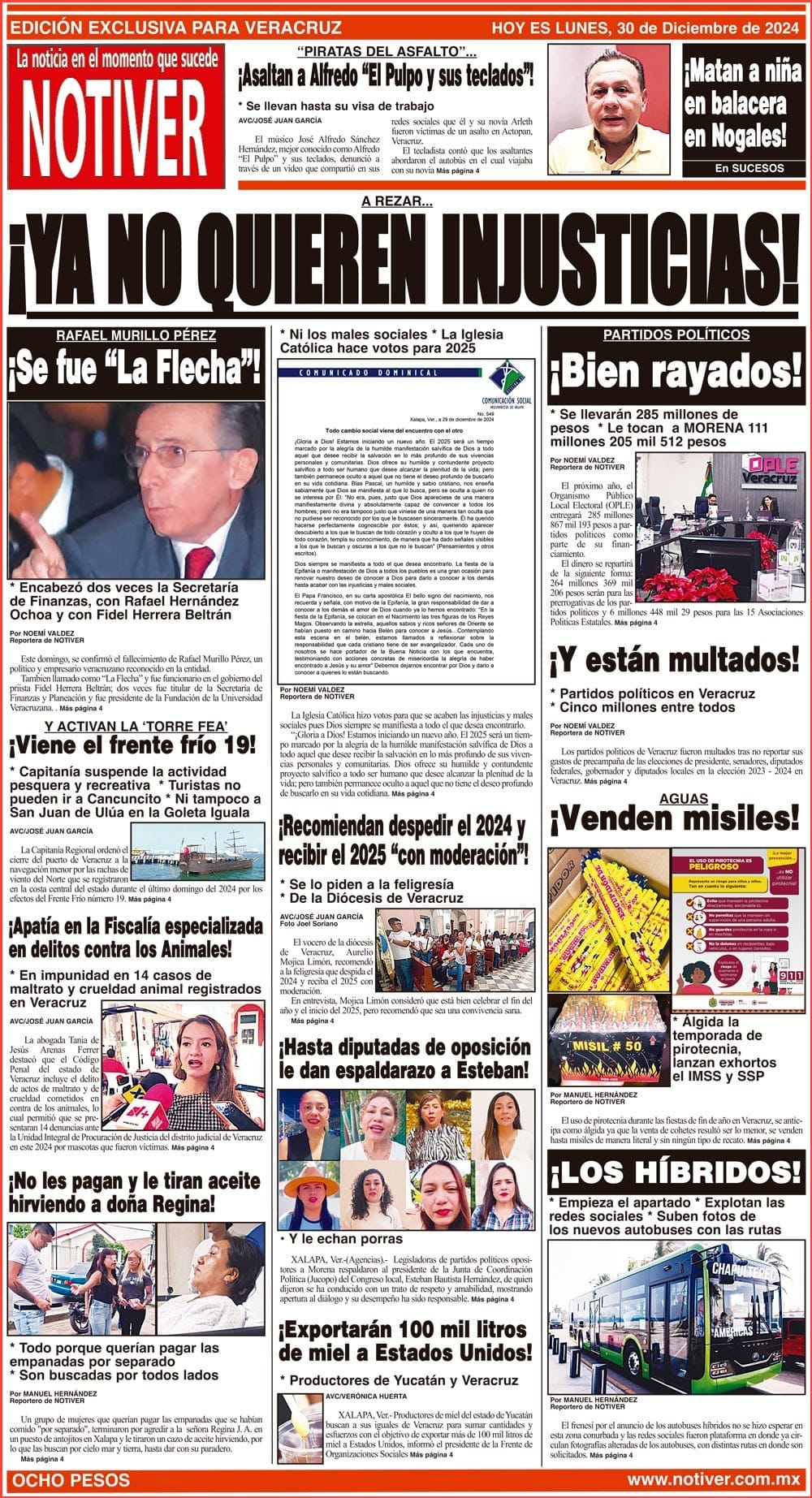 PRIMERA LA PORTADA - LUNES 30 DE DICIEMBRE 2024 A REZAR... - * NI LOS MALES SOCIALES * LA IGLESIA CATÓLICA HACE VOTOS PARA 2025 30 diciembre 2024