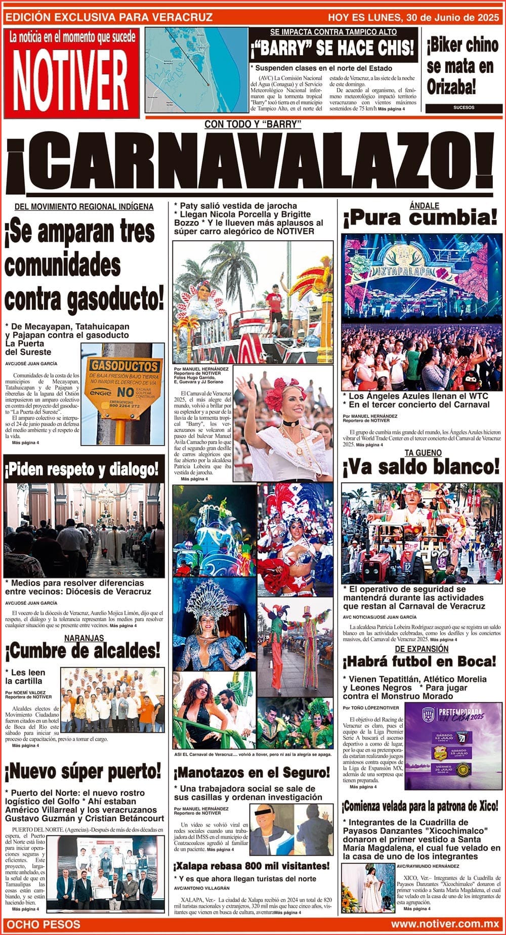 PRIMERA LA PORTADA - LUNES 30 DE JUNIO 2025 CON TODO Y “BARRY” - * PATY SALIÓ VESTIDA DE JAROCHA * LLEGAN NICOLA PORCELLA Y BRIGITTE BOZZO * Y LE LLUEVEN MÁS APLAUSOS AL SÚPER CARRO ALEGÓRICO DE NOTIVER 30 junio 2025