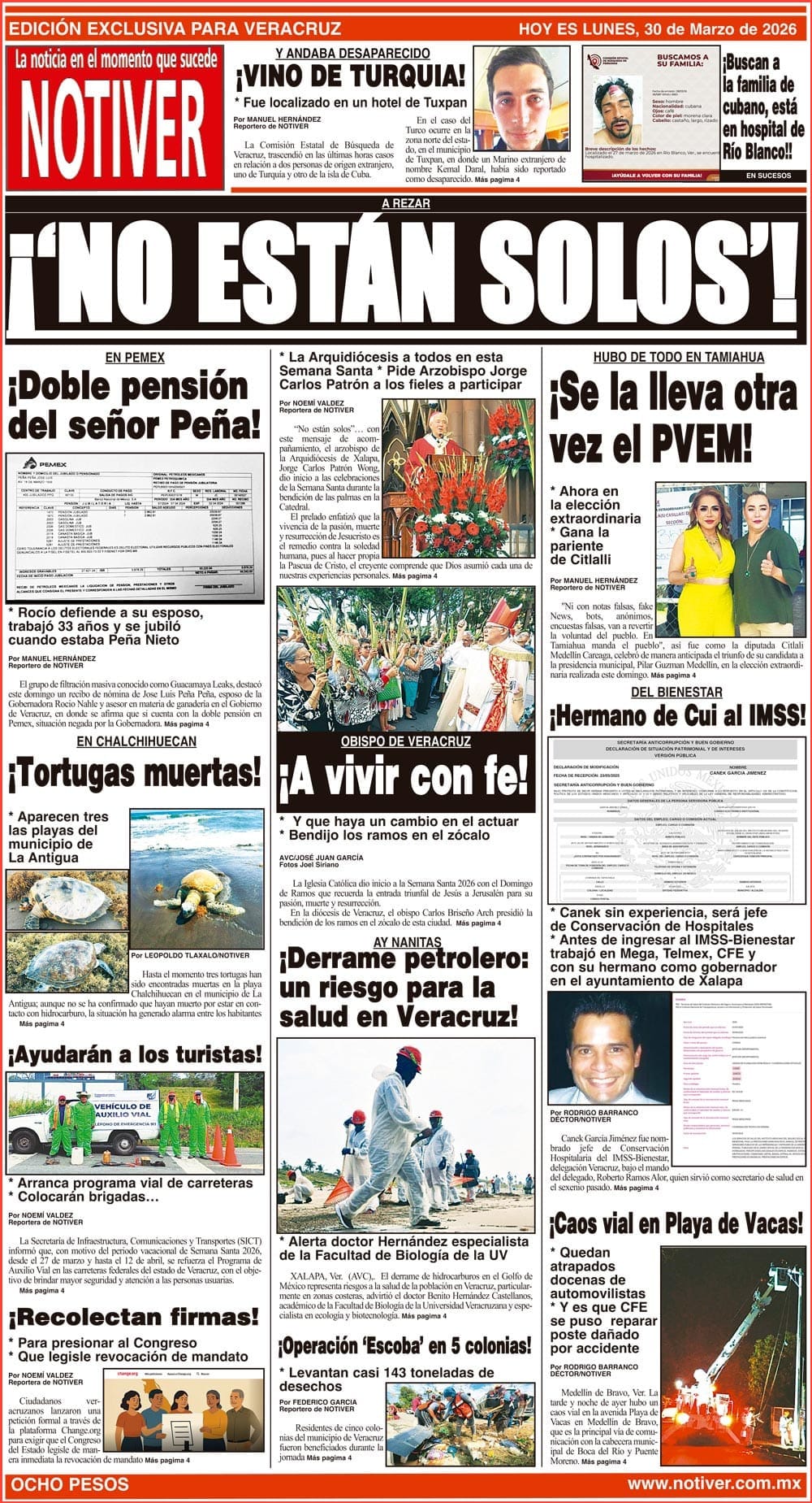 PRIMERA LA PORTADA - LUNES 30 DE MARZO 2026 A REZAR - *LA ARQUIDIÓCESIS A TODOS EN ESTA SEMANA SANTA *PIDE ARZOBISPO JORGE CARLOS PATRÓN A LOS FIELES A PARTICIPAR 30 marzo 2026