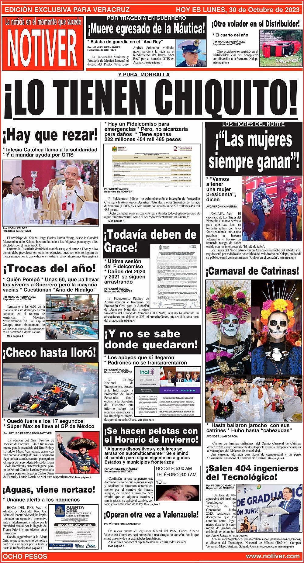 PRIMERA LA PORTADA - LUNES, 30 DE OCTUBRE 2023 Y PURA MORRALLA - * HAY UN FIDEICOMISO PARA EMERGENCIAS * PERO, NO ALCANZARÍA PARA DAÑOS * TIENE APENAS 222 MILLONES 454 MIL 485 PESOS 30 octubre 2023 Y LOS ANUNCIOS...Cotice su Anuncio Su Correo Electrónico: Texto: Enviar