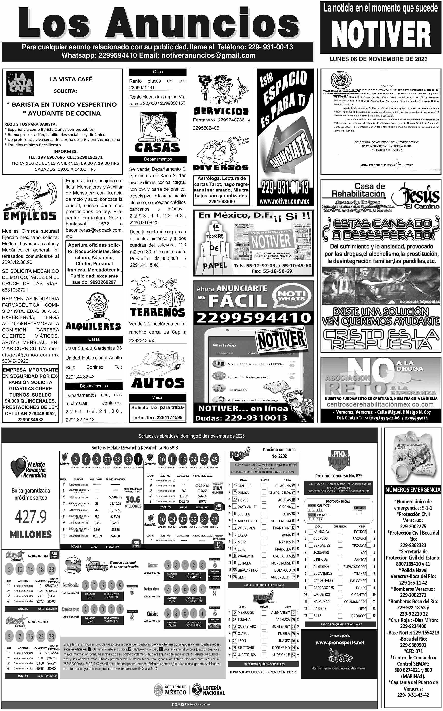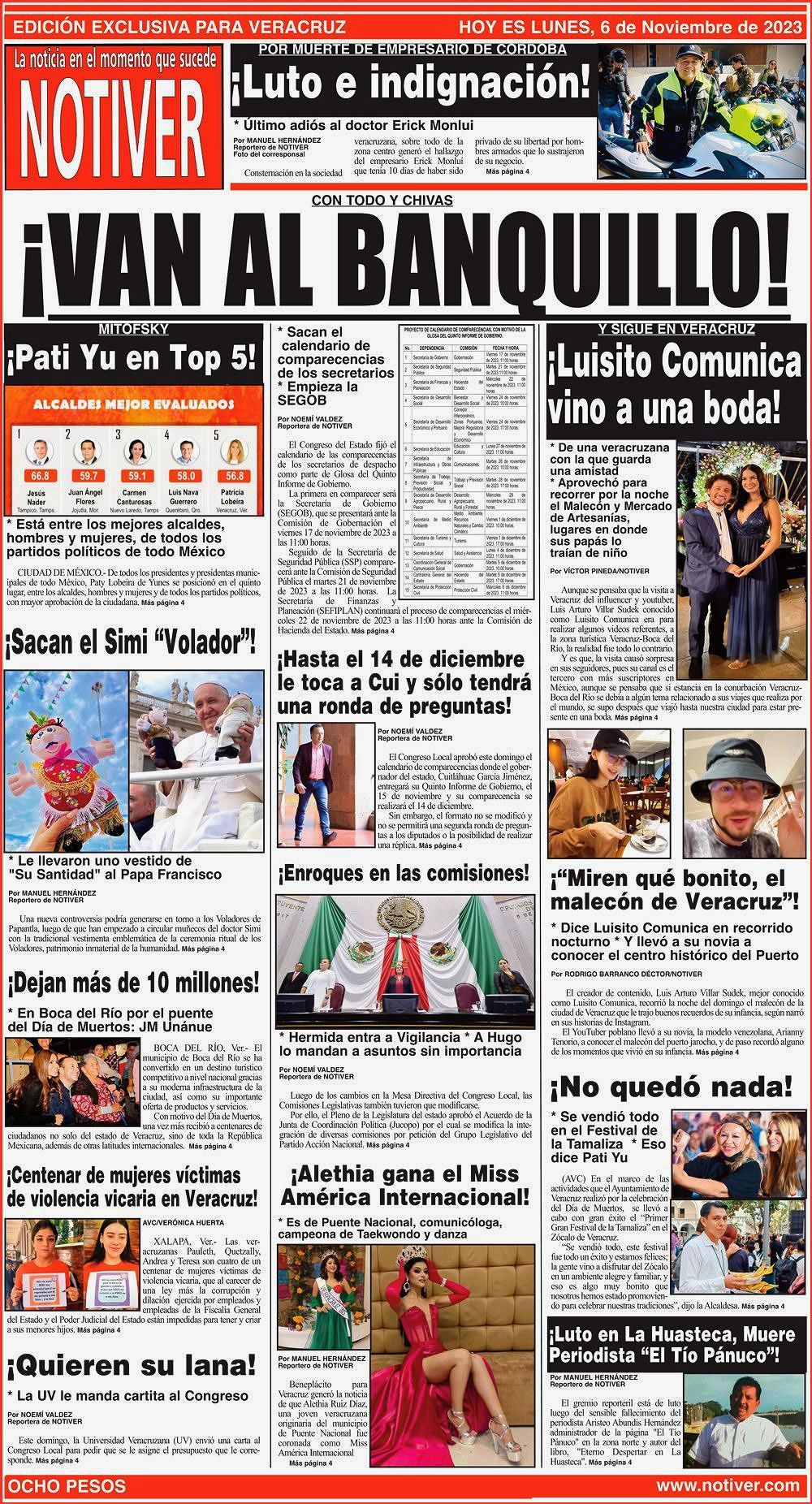 PRIMERA LA PORTADA - LUNES, 6 DE NOVIEMBRE 2023 CON TODO Y CHIVAS - * SACAN EL CALENDARIO DE COMPARECENCIAS DE LOS SECRETARIOS * EMPIEZA LA SEGOB 6 noviembre 2023 Y LOS ANUNCIOS...Cotice su Anuncio Su Correo Electrónico: Texto: Enviar