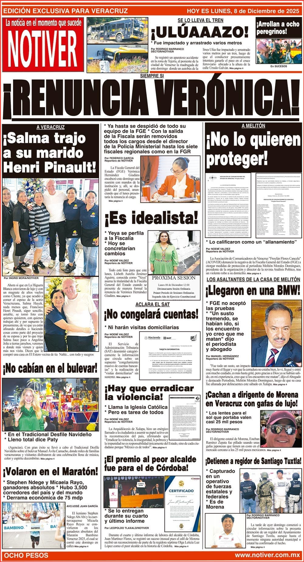 PRIMERA LA PORTADA - LUNES 8 DE DICIEMBRE 2025 SIEMPRE SI - *YA HASTA SE DESPIDIÓ DE TODO SU EQUIPO DE LA FGE *CON LA SALIDA DE LA FISCALA SERÁN REMOVIDOS TODOS LOS CARGOS DESDE EL DIRECTOR DE LA POLICÍA MINISTERIAL HASTA LOS SIETE FISCALES REGIONALES COMO EN LA FGR 8 diciembre 2025