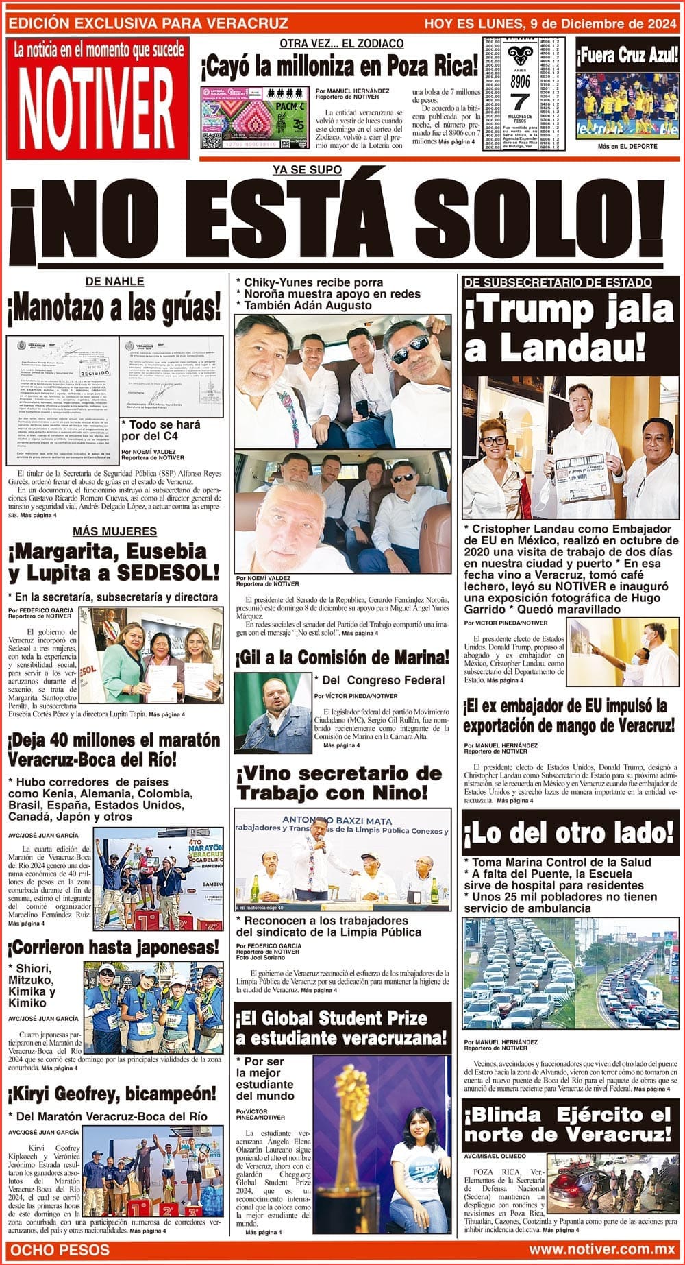 PRIMERA LA PORTADA - LUNES 9 DE DICIEMBRE 2024 YA SE SUPO - *CHIKY-YUNES RECIBE PORRA *NOROÑA MUESTRA APOYO EN REDES * TAMBIÉN ADÁN AUGUSTO 9 diciembre 2024