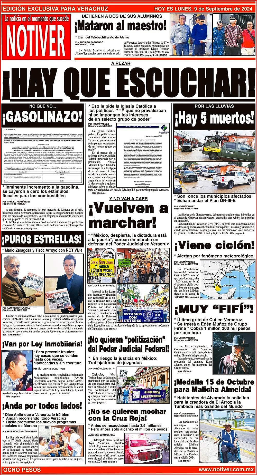 PRIMERA LA PORTADA - LUNES 9 DE SEPTIEMBRE 2024 A REZAR - * ESO LE PIDE LA IGLESIA CATÓLICA A LOS POLÍTICOS * “Y QUE NO PREVALEZCAN NI SE IMPONGAN LOS INTERESES DE UN SELECTO GRUPO DE PODER” 9 septiembre 2024