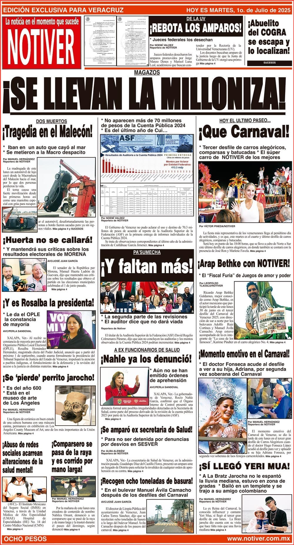 PRIMERA LA PORTADA - MARTES 1 DE JULIO 2025 MAGAZOS - *NO APARECEN MÁS DE 70 MILLONES DE PESOS DE LA CUENTA PÚBLICA 2024 *ES DEL ÚLTIMO AÑO DE CUI… 1 julio 2025