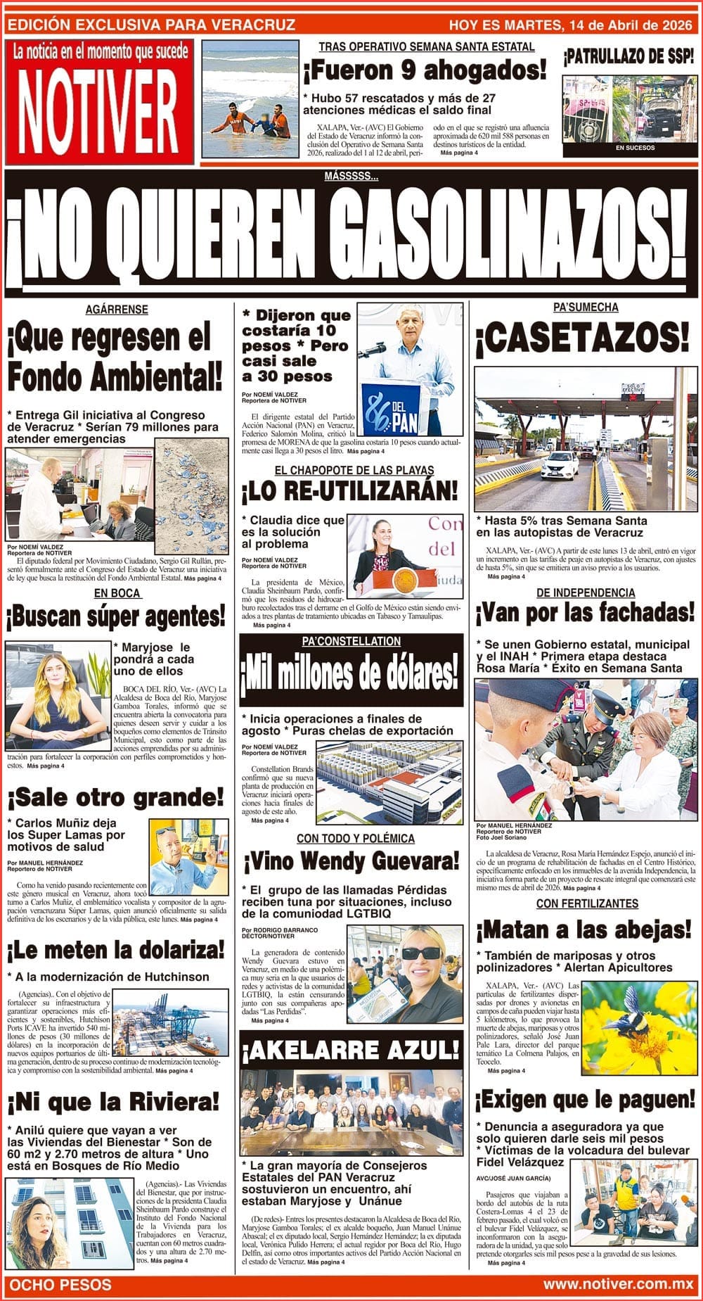 PRIMERA LA PORTADA - MARTES 14 DE ABRIL 2026 MÁSSSSS... - *DIJERON QUE COSTARÍA 10 PESOS *PERO CASI SALE A 30 PESOS 14 abril 2026