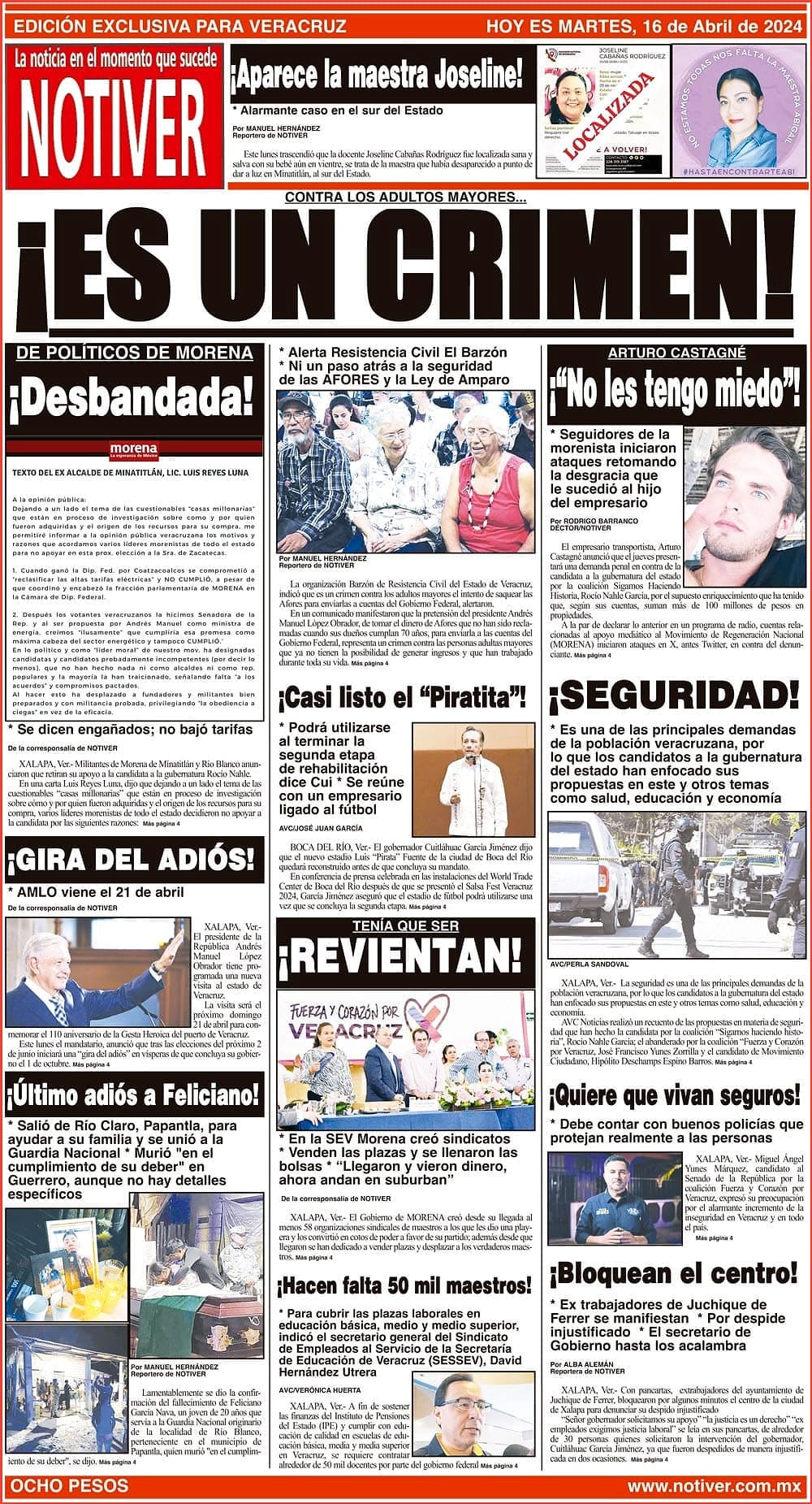 PRIMERA LA PORTADA - MARTES 16 DE ABRIL 2024 CONTRA LOS ADULTOS MAYORES... - * ALERTA RESISTENCIA CIVIL EL BARZÓN * NI UN PASO ATRÁS A LA SEGURIDAD DE LAS AFORES Y LA LEY DE AMPARO 16 abril 2024 Y LOS ANUNCIOS...