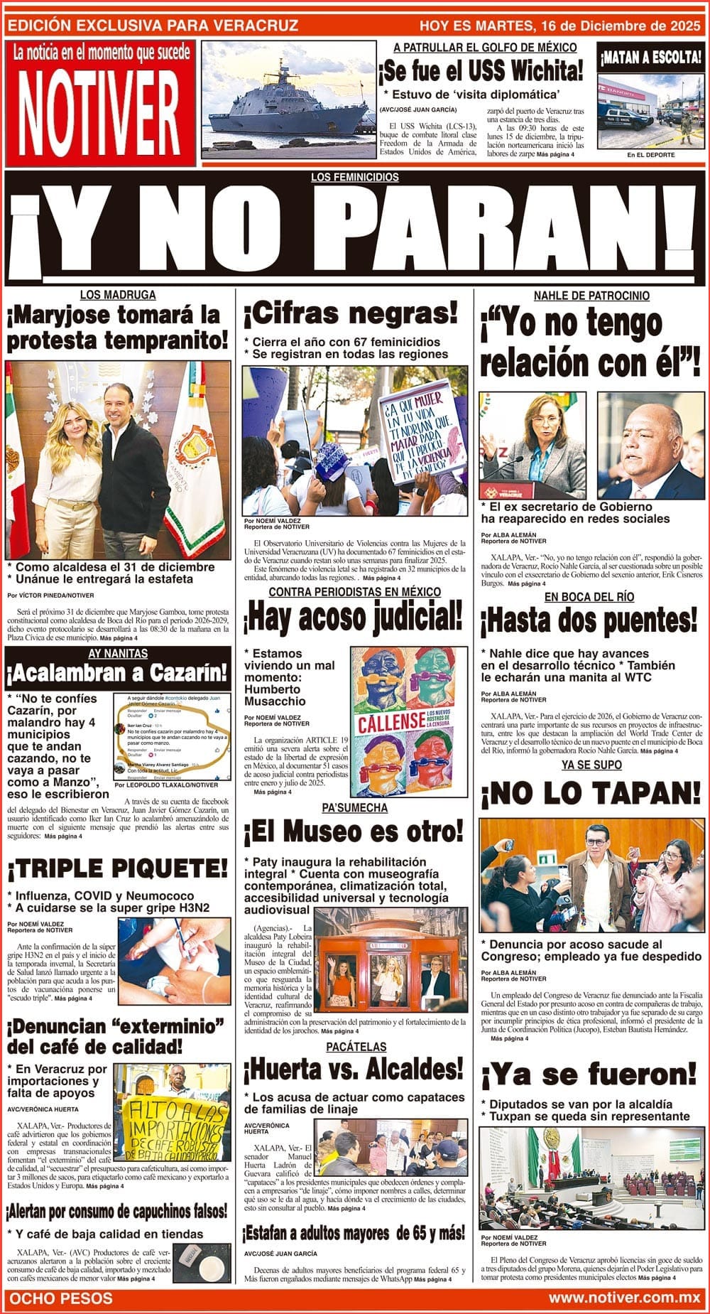 PRIMERA LA PORTADA - MARTES 16 DE DICIEMBRE 2025 LOS FEMINICIDIOS - *¡CIFRAS NEGRAS! *CIERRA EL AÑO CON 67 FEMINICIDIOS *SE REGISTRAN EN TODAS LAS REGIONES 16 diciembre 2025