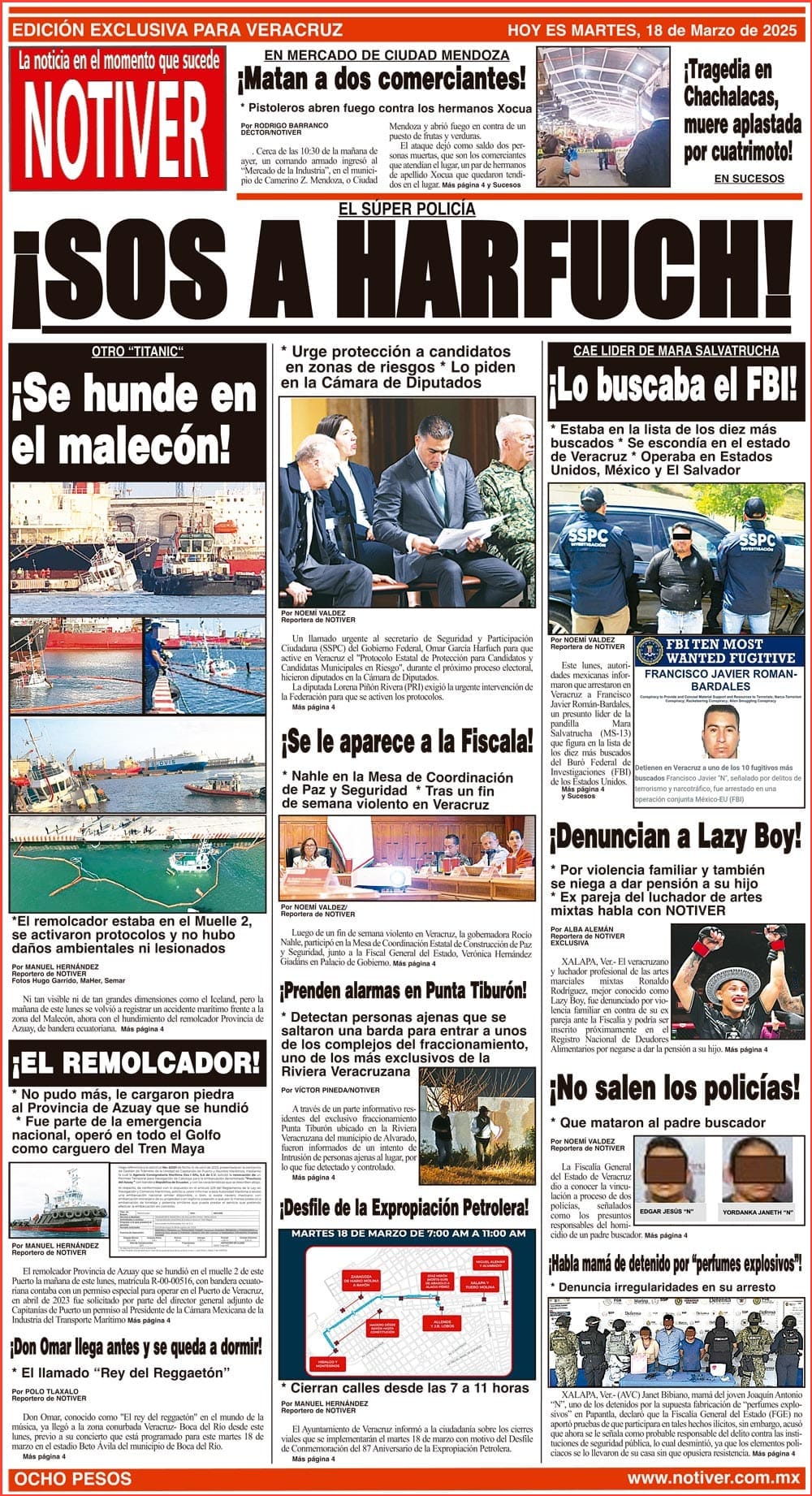PRIMERA LA PORTADA - MARTES 18 DE MARZO 2025 EL SÚPER POLICÍA - *URGE PROTECCIÓN A CANDIDATOS EN ZONAS DE RIESGOS *LO PIDEN EN LA CÁMARA DE DIPUTADOS 18 marzo 2025