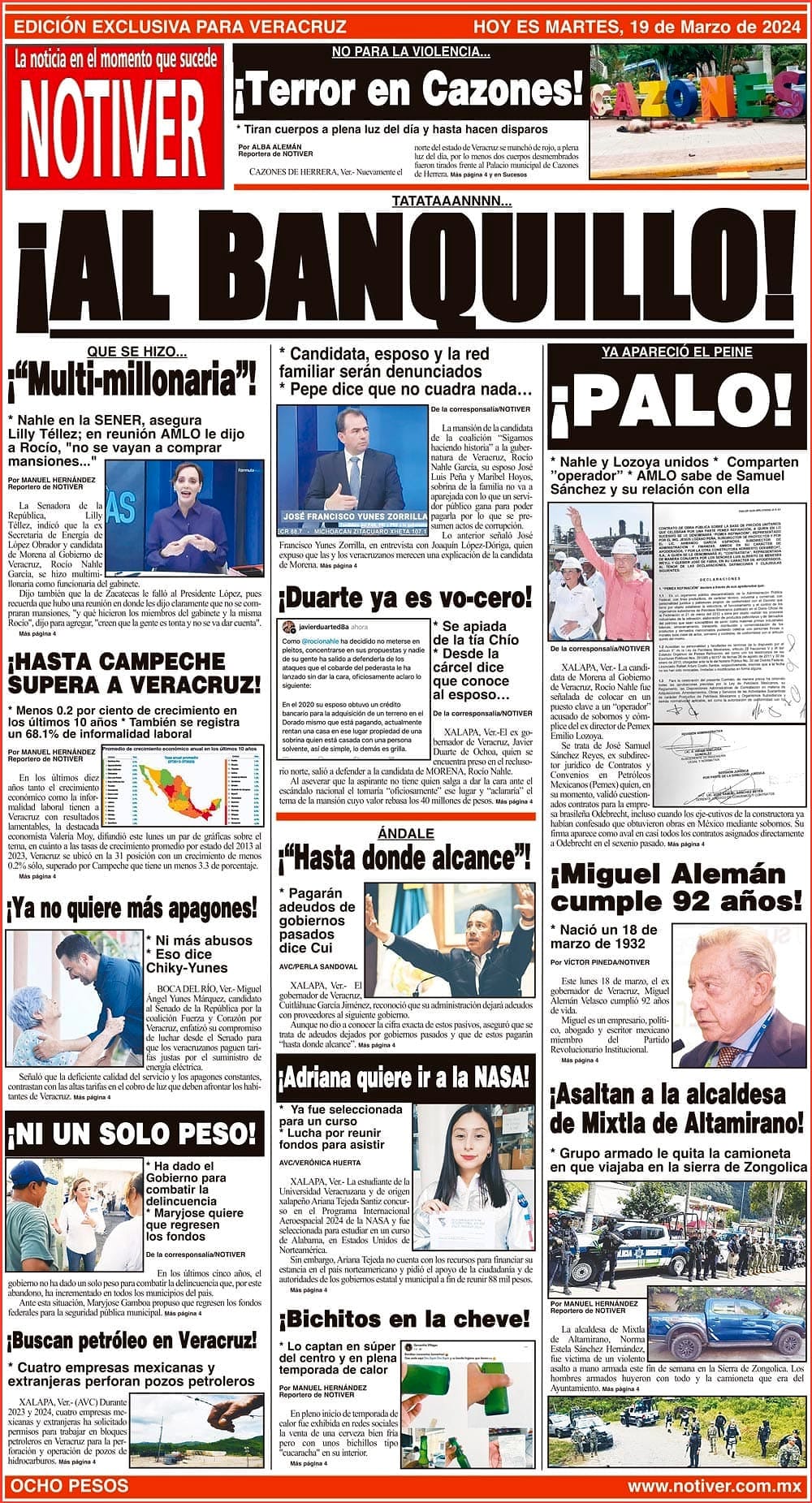 PRIMERA LA PORTADA - MARTES 19 DE MARZO 2024 TATATAAANNNN... - * CANDIDATA, ESPOSO Y LA RED FAMILIAR SERÁN DENUNCIADOS * PEPE DICE QUE NO CUADRA NADA… 19 marzo 2024 Y LOS ANUNCIOS...Cotice su Anuncio Su Correo Electrónico: Texto: Enviar