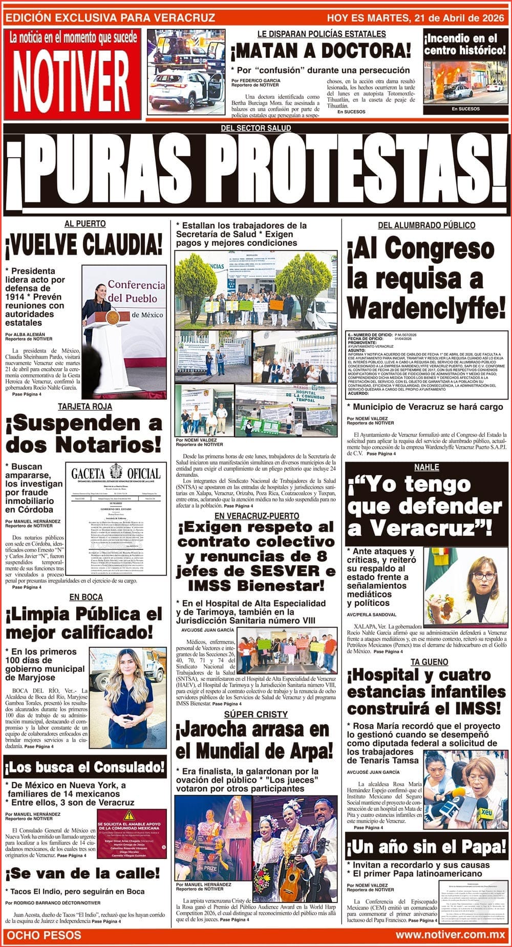 PRIMERA LA PORTADA - MARTES 21 DE ABRIL 2026 DEL SECTOR SALUD - *ESTALLAN LOS TRABAJADORES DE LA SECRETARÍA DE SALUD *EXIGEN PAGOS Y MEJORES CONDICIONES 21 abril 2026