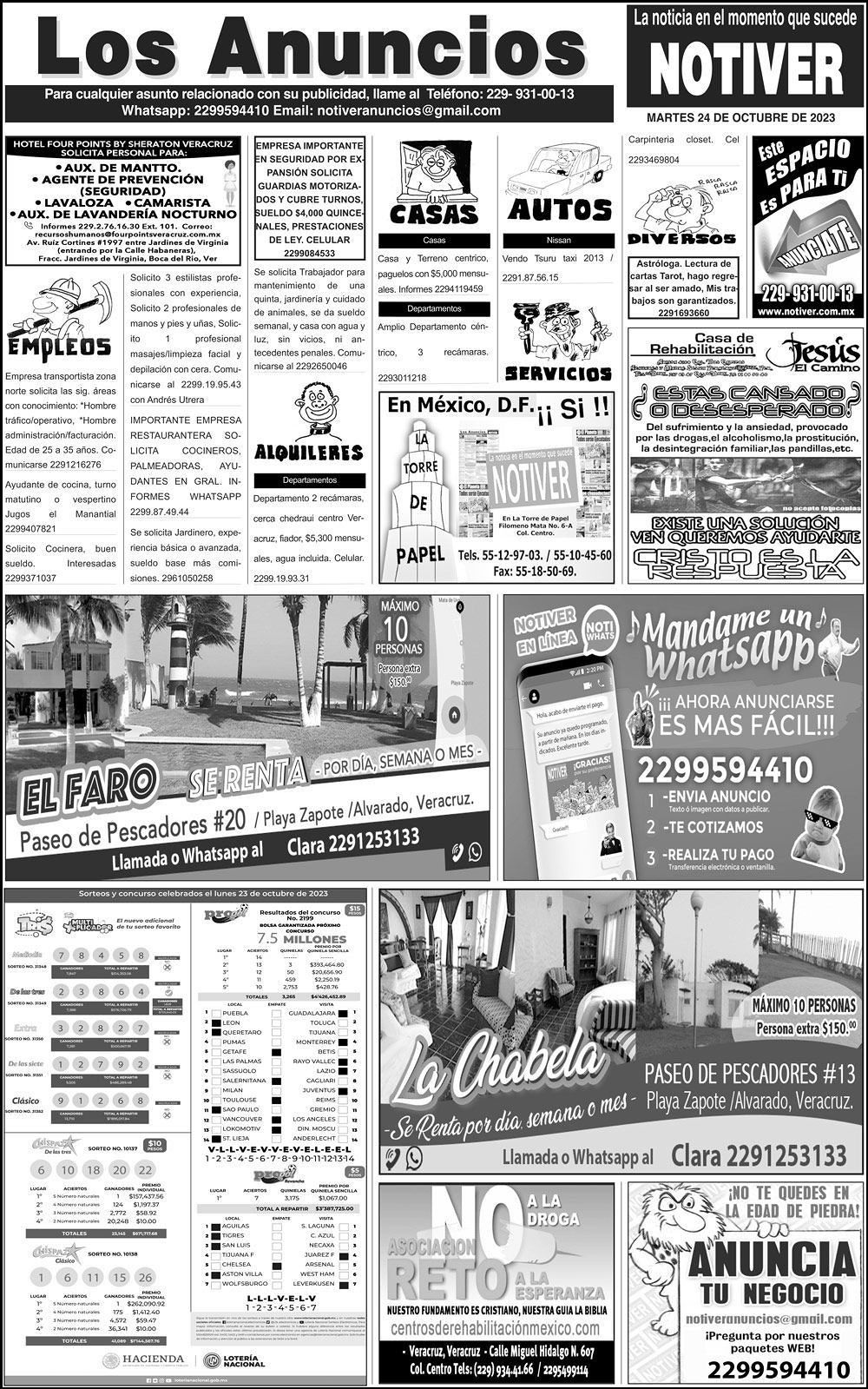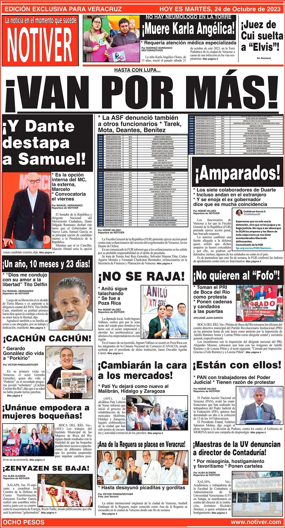 PRIMERA LA PORTADA - MARTES, 24 DE OCTUBRE 2023 HASTA CON LUPA... - * LA ASF DENUNCIÓ TAMBIÉN A OTROS FUNCIONARIOS * TAREK, MOTA, DEANTES, BENÍTEZ 24 octubre 2023 Y LOS ANUNCIOS...Cotice su Anuncio Su Correo Electrónico: Texto: Enviar