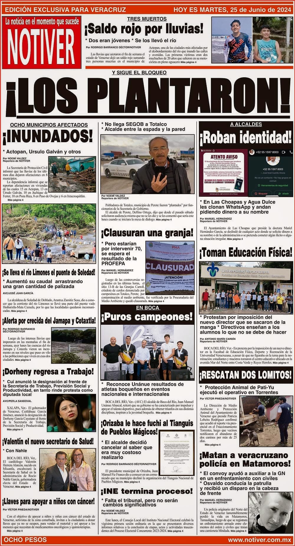 PRIMERA LA PORTADA - MARTES 25 DE JUNIO 2024 Y SIGUE EL BLOQUEO - * NO LLEGA SEGOB A TOTALCO * ALCALDE ENTRE LA ESPADA Y LA PARED 25 junio 2024