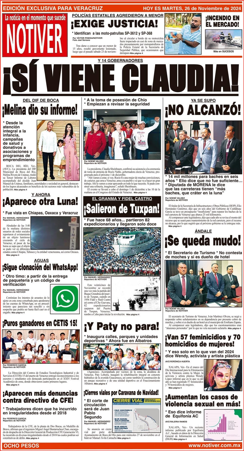 PRIMERA LA PORTADA - MARTES 26 DE NOVIEMBRE 2024 Y 14 GOBERNADORES - *A LA TOMA DE POSESIÓN DE CHÍO *EMPIEZAN A REVISAR LA SEGURIDAD 26 noviembre 2024