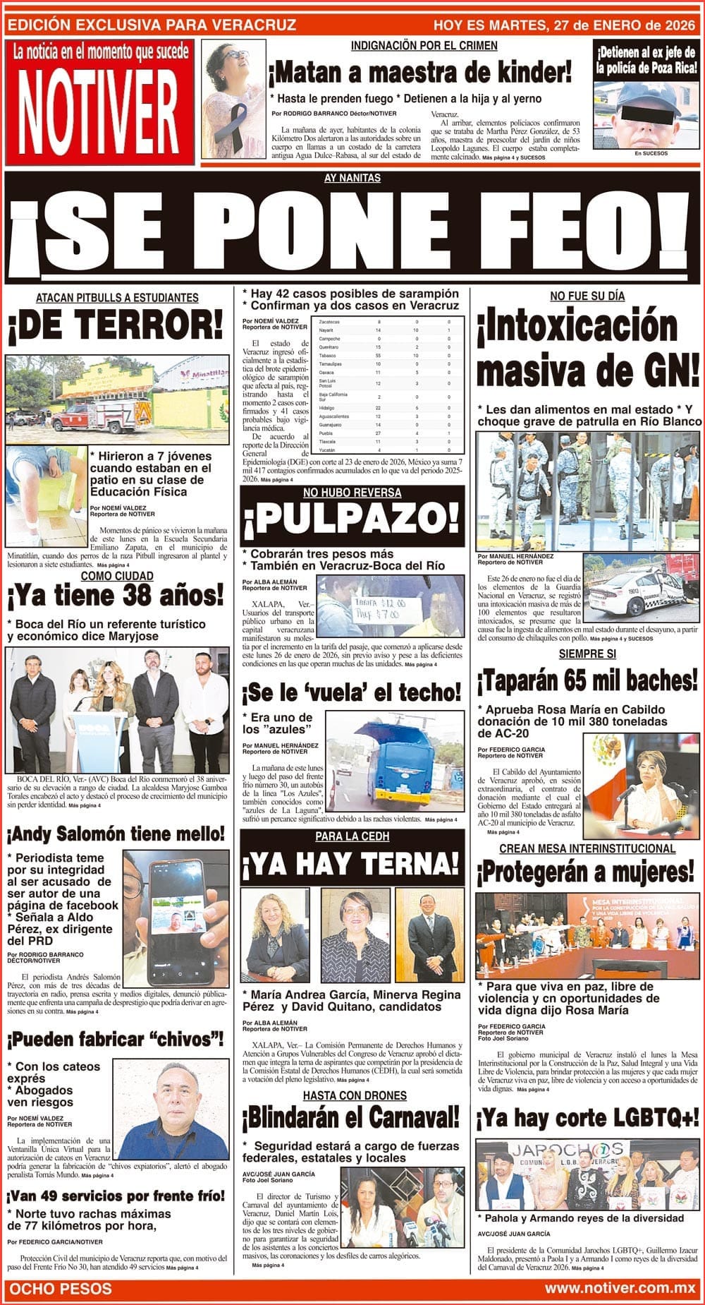 PRIMERA LA PORTADA - MARTES 27 DE ENERO 2026 AY NANITAS - *HAY 42 CASOS POSIBLES DE SARAMPIÓN *CONFIRMAN YA DOS CASOS EN VERACRUZ 27 enero 2026