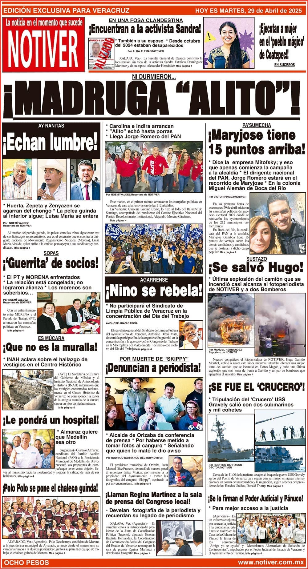 PRIMERA LA PORTADA - MARTES 29 DE ABRIL 2025 NI DURMIERON... - * CAROLINA E INDIRA ARRANCAN * ”ALITO” ECHÓ HASTA PORRAS * LLEGA JORGE ROMERO DEL PAN 29 abril 2025