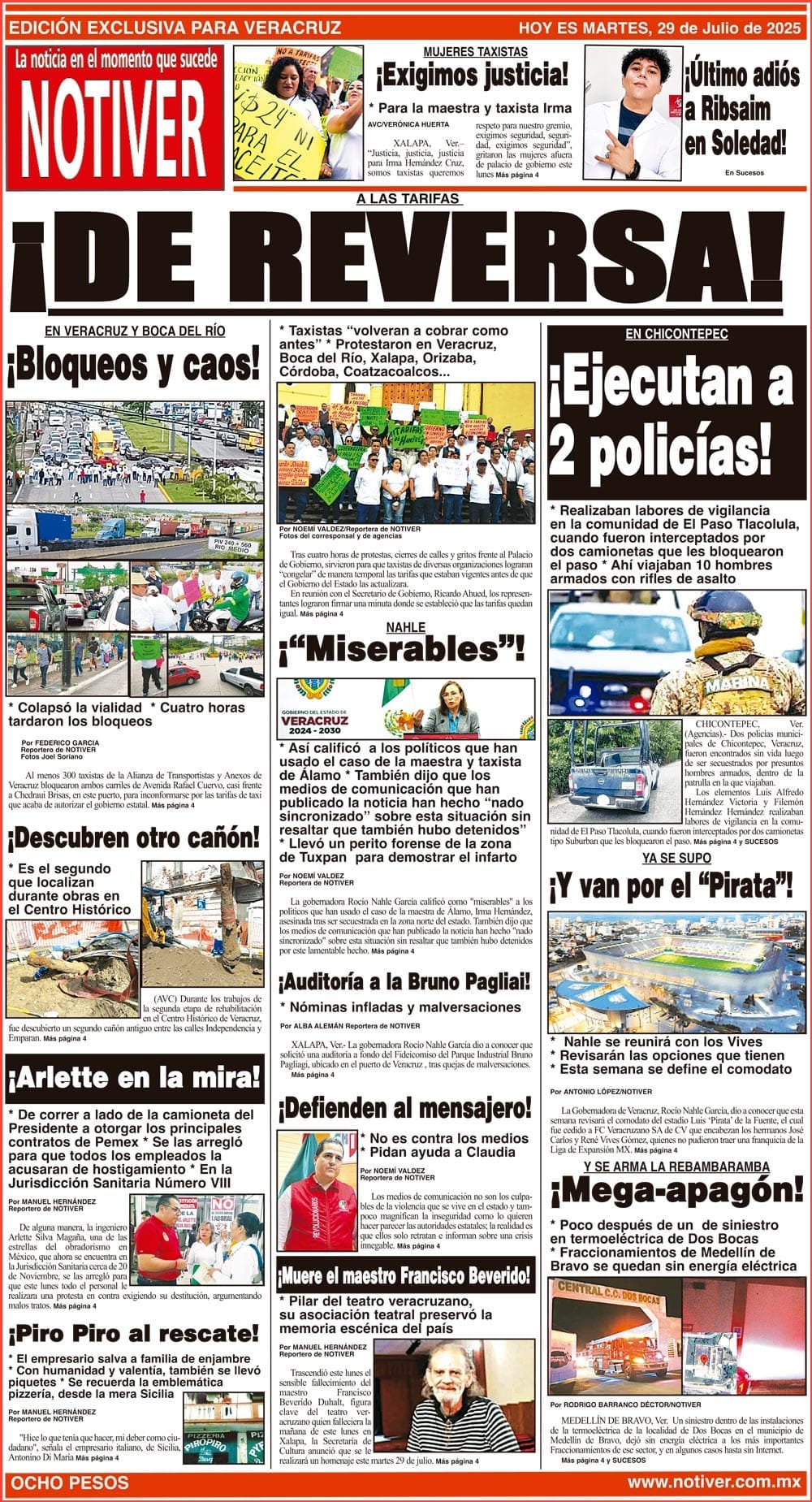 PRIMERA LA PORTADA - MARTES 29 DE JULIO 2025 A LAS TARIFAS - *TAXISTAS “VOLVERAN A COBRAR COMO ANTES” *PROTESTARON EN VERACRUZ, BOCA DEL RÍO, XALAPA, ORIZABA, CÓRDOBA, COATZACOALCOS... 29 julio 2025