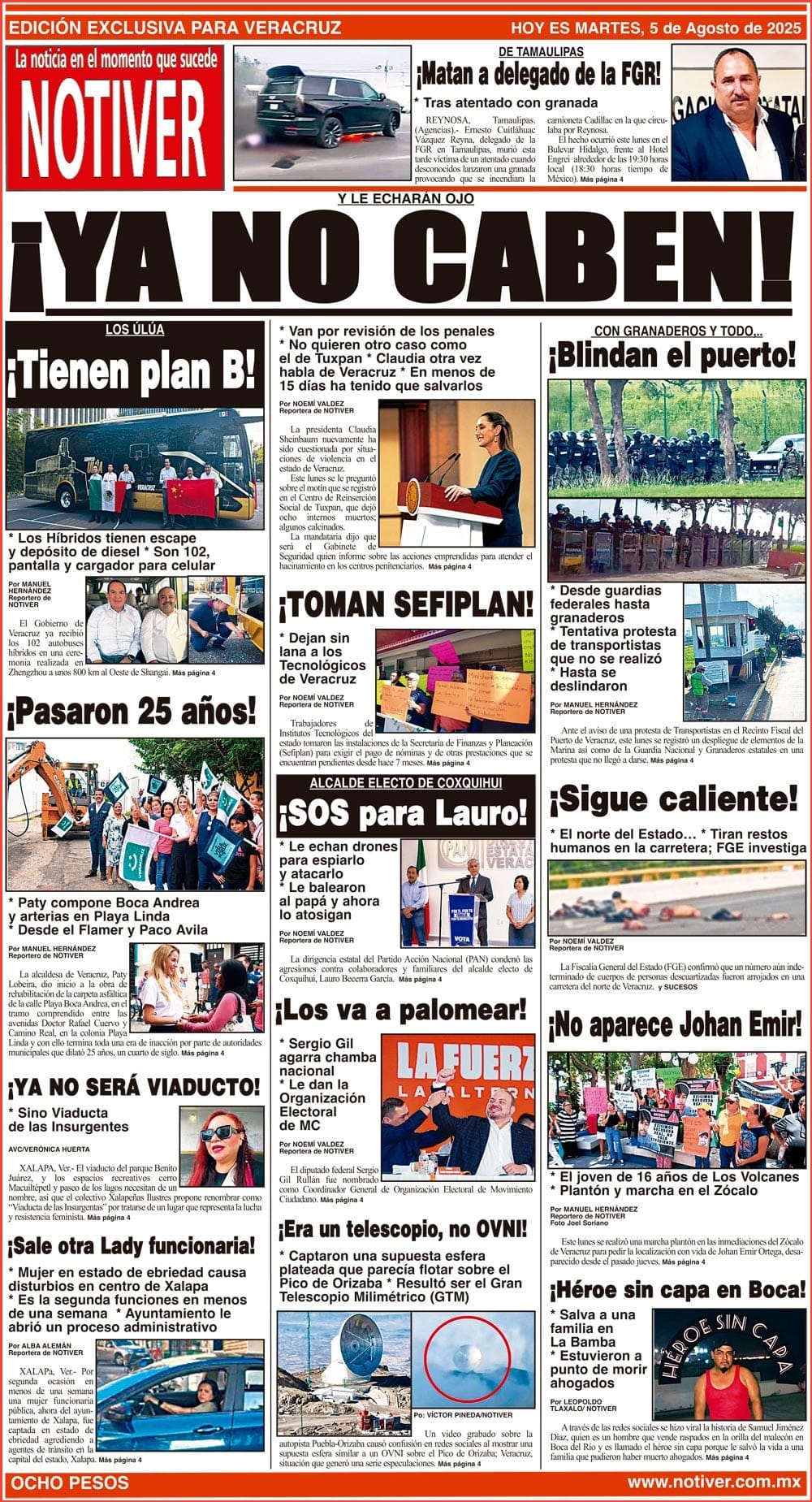 PRIMERA LA PORTADA - MARTES 5 DE AGOSTO 2025 Y LE ECHARÁN OJO - *VAN POR REVISIÓN DE LOS PENALES *NO QUIEREN OTRO CASO COMO EL DE TUXPAN *CLAUDIA OTRA VEZ HABLA DE VERACRUZ *EN MENOS DE 15 DÍAS HA TENIDO QUE SALVARLOS 5 agosto 2025