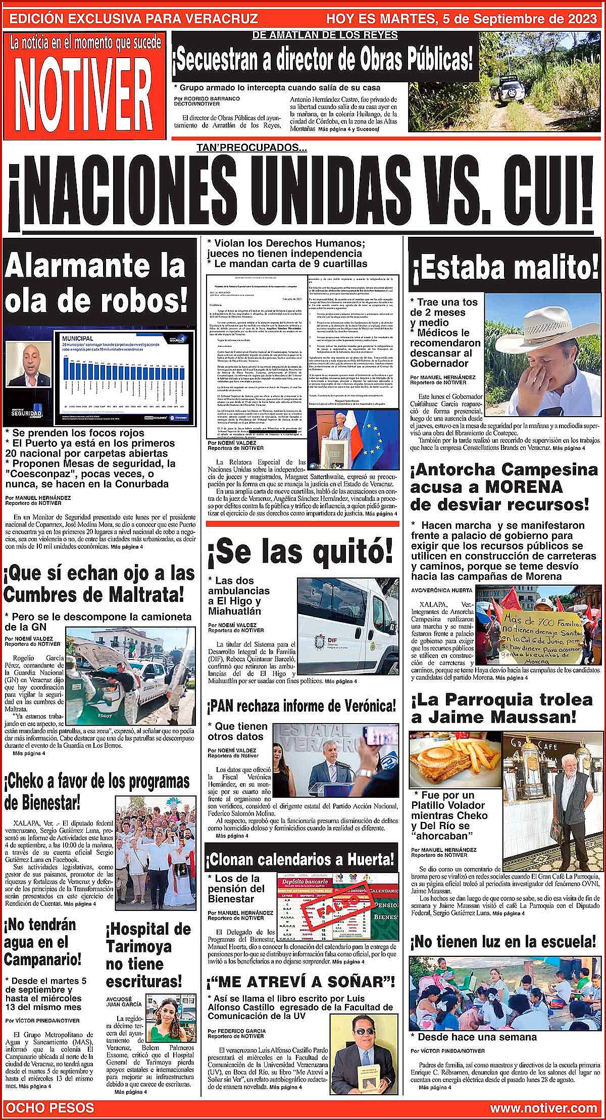 PRIMERA LA PORTADA - MARTES, 5 DE SEPTIEMBRE 2023 TAN´PREOCUPADOS - * VIOLAN LOS DERECHOS HUMANOS; JUECES NO TIENEN INDEPENDENCIA * LE MANDAN CARTA DE 9 CUARTILLAS 5 septiembre 2023 Y LOS ANUNCIOS... Cotice su Anuncio Su Correo Electrónico: Texto: Enviar