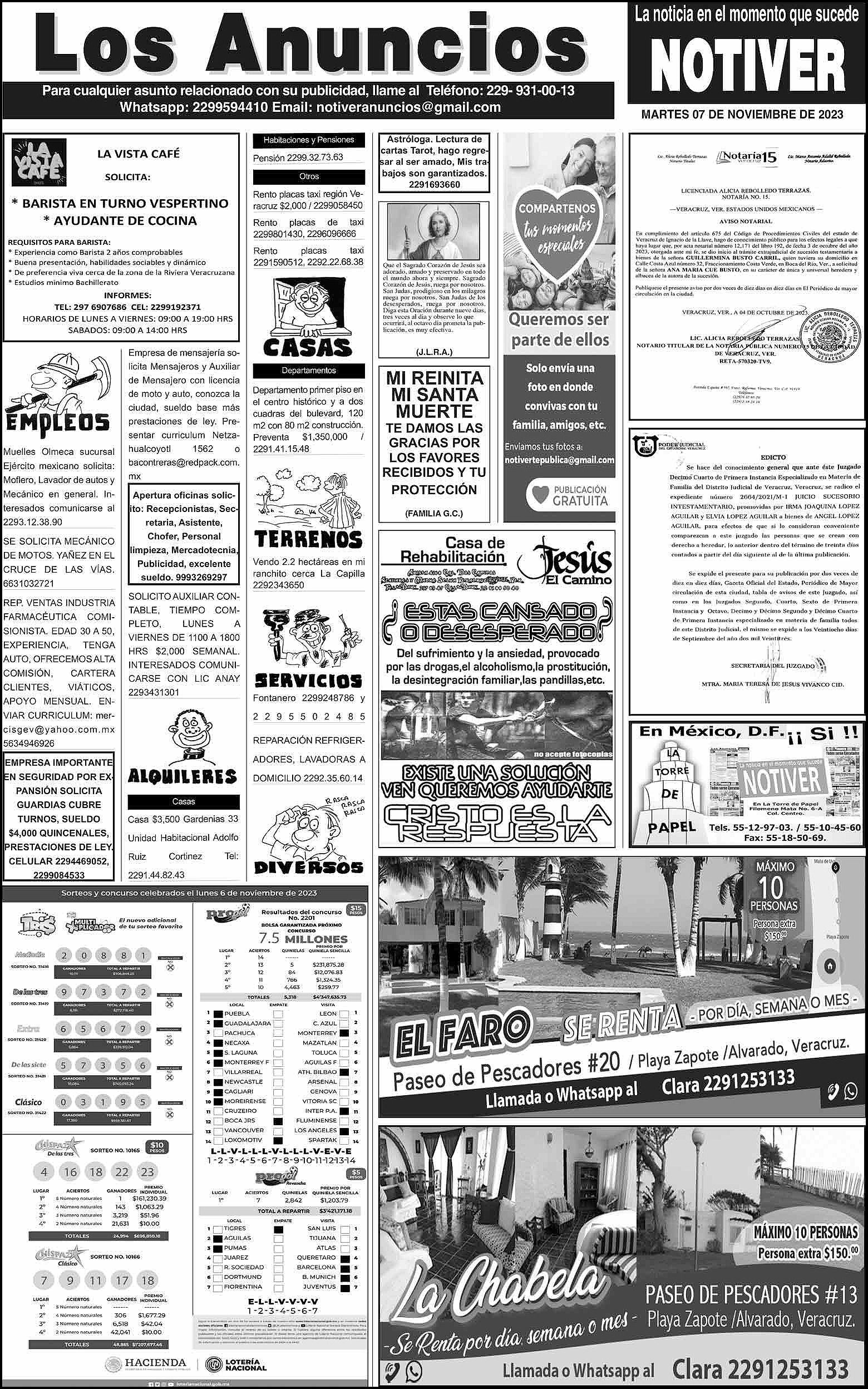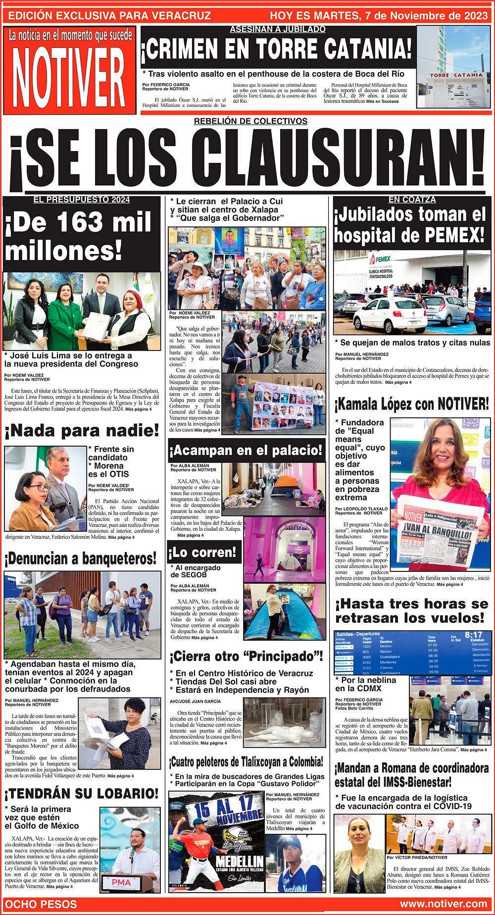 PRIMERA LA PORTADA - MARTES, 7 DE NOVIEMBRE 2023 REBELIÓN DE COLECTIVOS - * LE CIERRAN EL PALACIO A CUI Y SITIAN EL CENTRO DE XALAPA * “QUE SALGA EL GOBERNADOR” 7 noviembre 2023 Y LOS ANUNCIOS...Cotice su Anuncio Su Correo Electrónico: Texto: Enviar