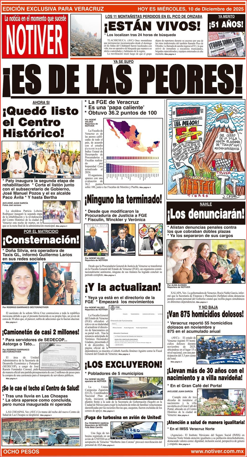 PRIMERA LA PORTADA - MIÉRCOLES 10 DE DICIEMBRE 2025 YA SE SUPO - *LA FGE DE VERACRUZ *ES UNA ‘PAPA CALIENTE’ *OBTUVO 36.2 PUNTOS DE 100 10 diciembre 2025