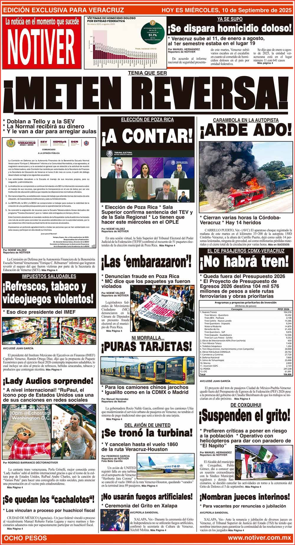 PRIMERA LA PORTADA - MIÉRCOLES 10 DE SEPTIEMBRE 2025 TENIA QUE SER - *DOBLAN A TELLO Y A LA SEV *LA NORMAL RECIBIRÁ SU DINERO *Y LE VAN A DAR PARA ARREGLAR AULAS 10 septiembre 2025