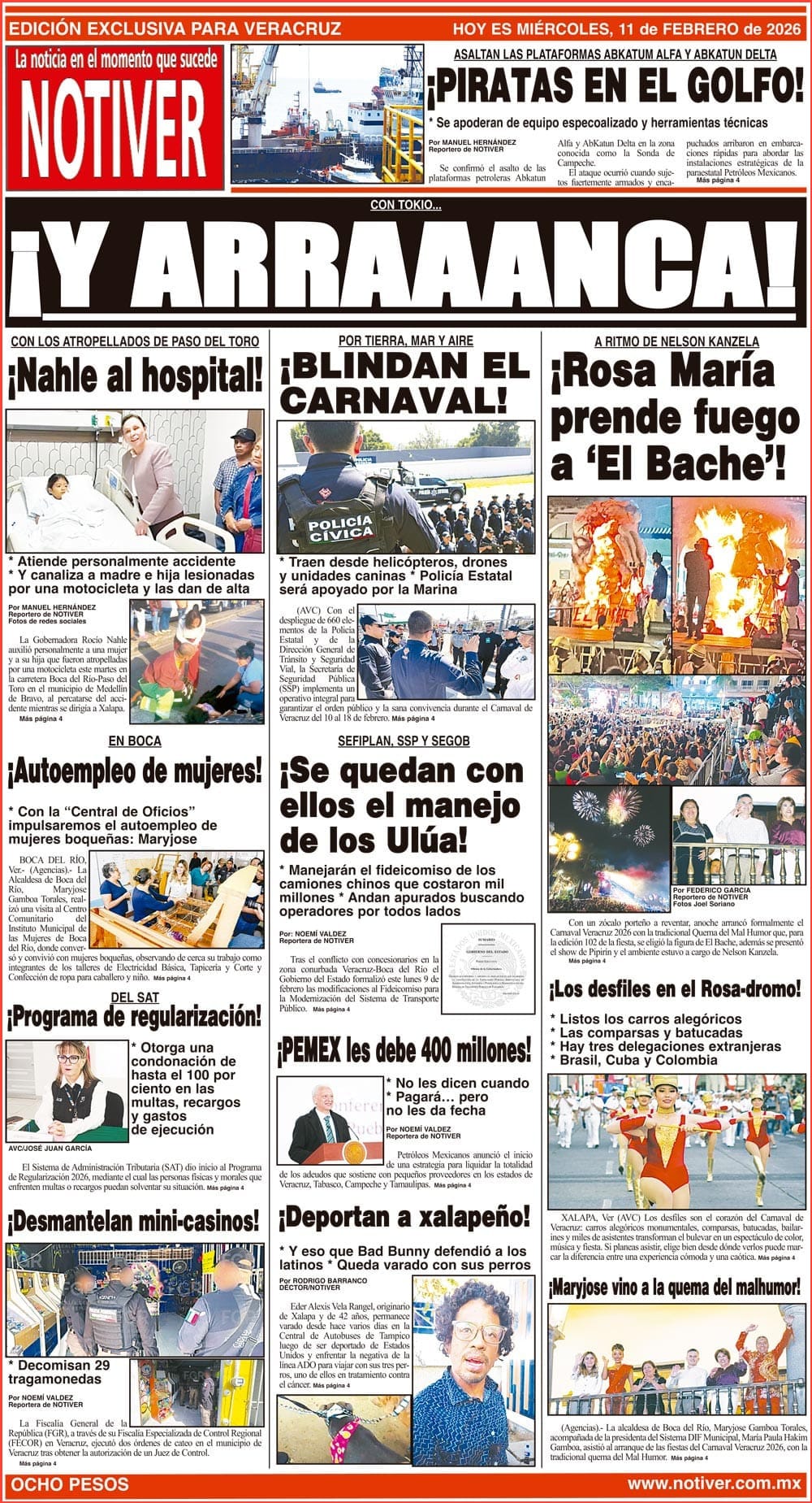 PRIMERA LA PORTADA - MIÉRCOLES 11 DE FEBRERO 2026 CON TOKIO... - *A RITMO DE NELSON KANZELA *¡ROSA MARÍA PRENDE FUEGO A ‘EL BACHE’! 11 febrero 2026
