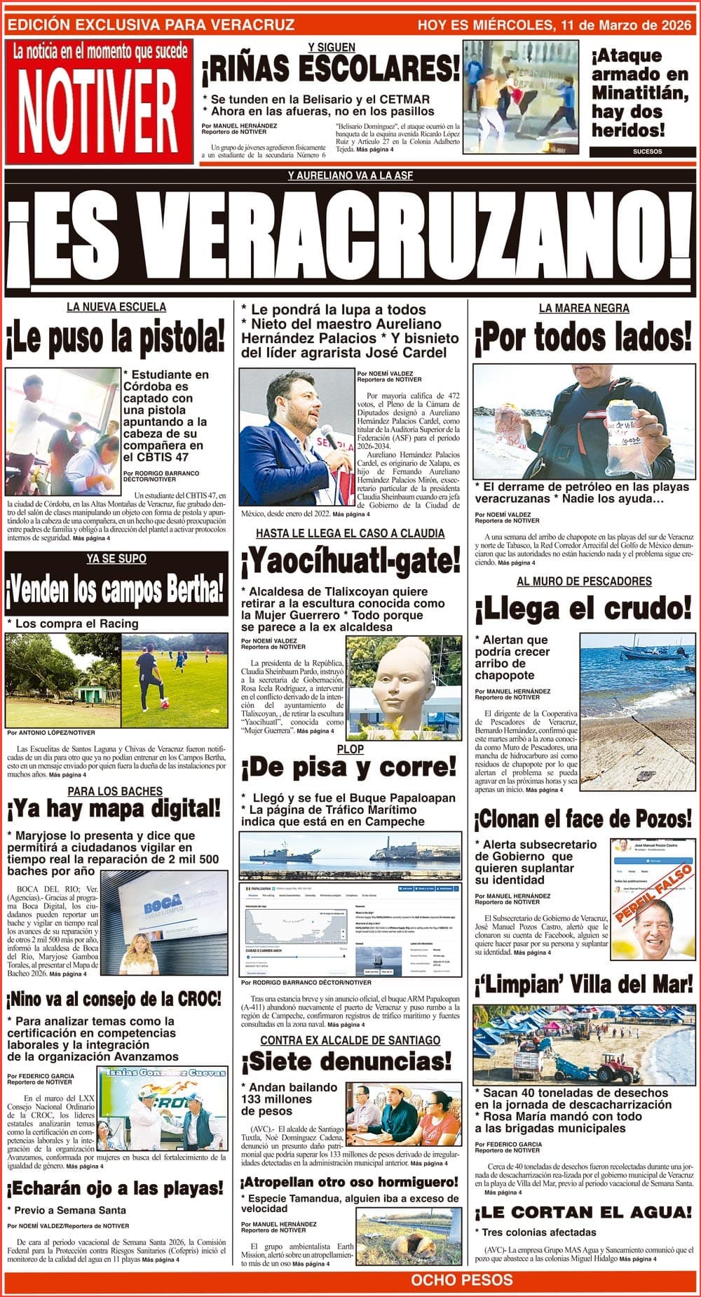 PRIMERA LA PORTADA - MIÉRCOLES 11 DE MARZO 2026 Y AURELIANO VA A LA ASF - *LE PONDRÁ LA LUPA A TODOS *NIETO DEL MAESTRO AURELIANO HERNÁNDEZ PALACIOS *Y BISNIETO DEL LÍDER AGRARISTA JOSÉ CARDEL 11 marzo 2026