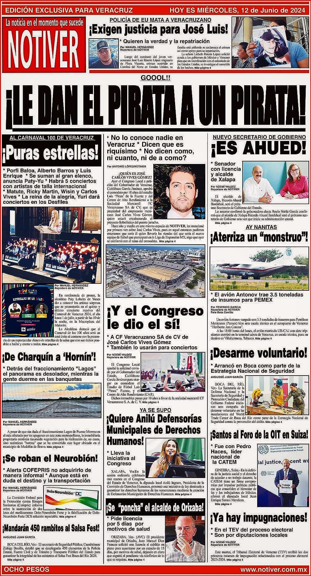 PRIMERA LA PORTADA - MIÉRCOLES 12 DE JUNIO 2024 GOOOL!! - * NO LO CONOCE NADIE EN VERACRUZ * DICEN QUE ES RIQUÍSIMO * NO DICEN COMO, NI CUANTO, NI DE A COMO? 12 junio 2024