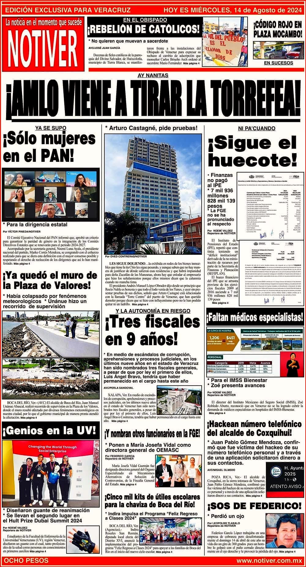 PRIMERA LA PORTADA - MIÉRCOLES 14 DE AGOSTO 2024 AY NANITAS - * ARTURO CASTAGNÉ, PIDE PRUEBAS! 14 agosto 2024