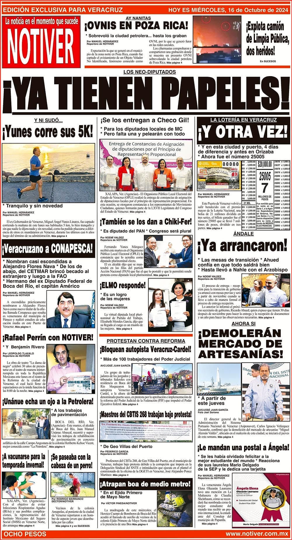 PRIMERA LA PORTADA - MIÉRCOLES 16 DE OCTUBRE 2024 LOS NEO-DIPUTADOS - *¡SE LOS ENTREGAN A CHECO GIL! *PARA LOS DIPUTADOS LOCALES DE MC *PERO FALTA UNA Y PELEARÁN CON TODO 16 octubre 2024