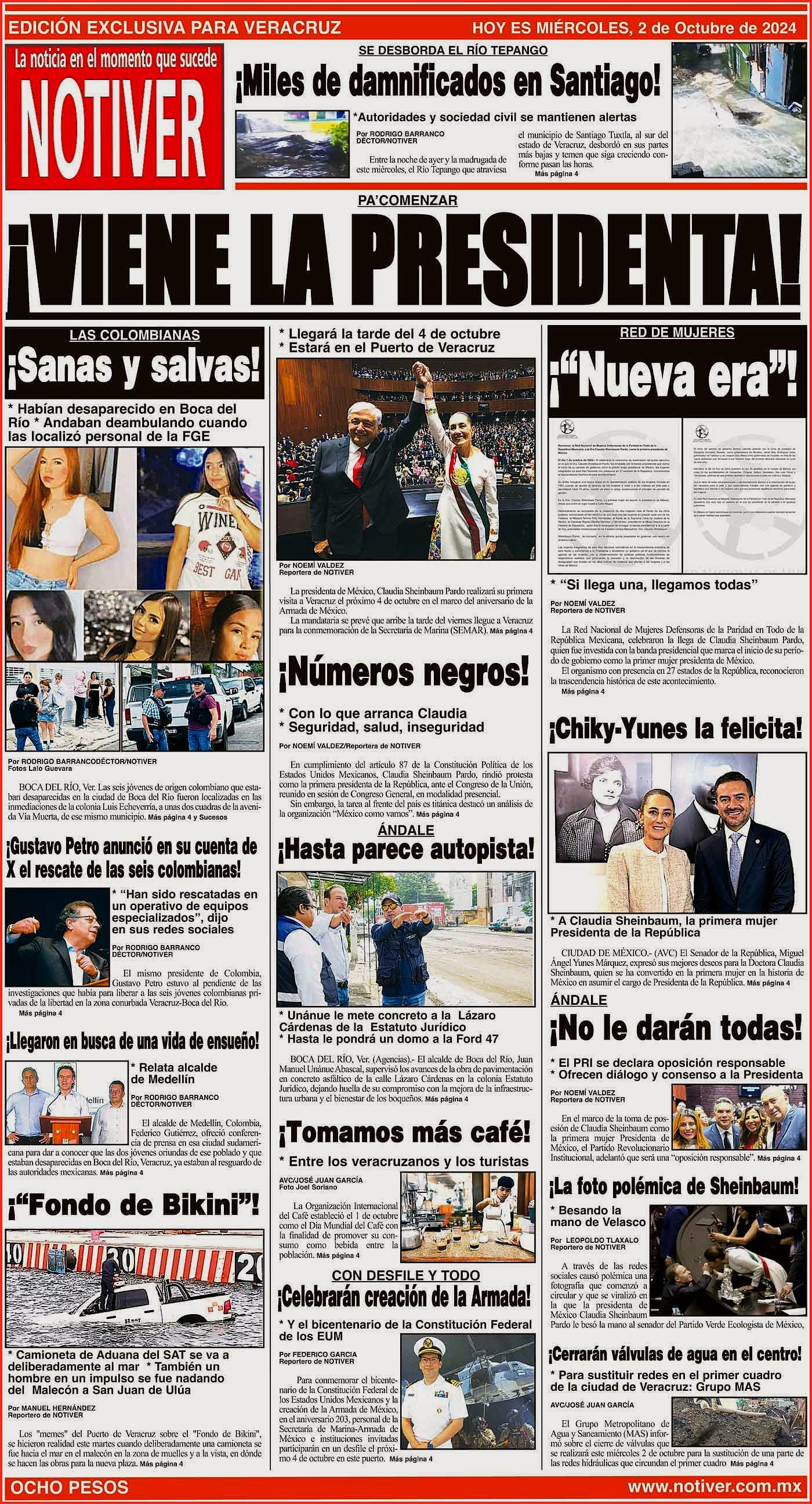PRIMERA LA PORTADA - MIÉRCOLES 2 DE OCTUBRE 2024 PA’COMENZAR - *LLEGARÁ LA TARDE DEL 4 DE OCTUBRE *ESTARÁ EN EL PUERTO DE VERACRUZ 2 octubre 2024