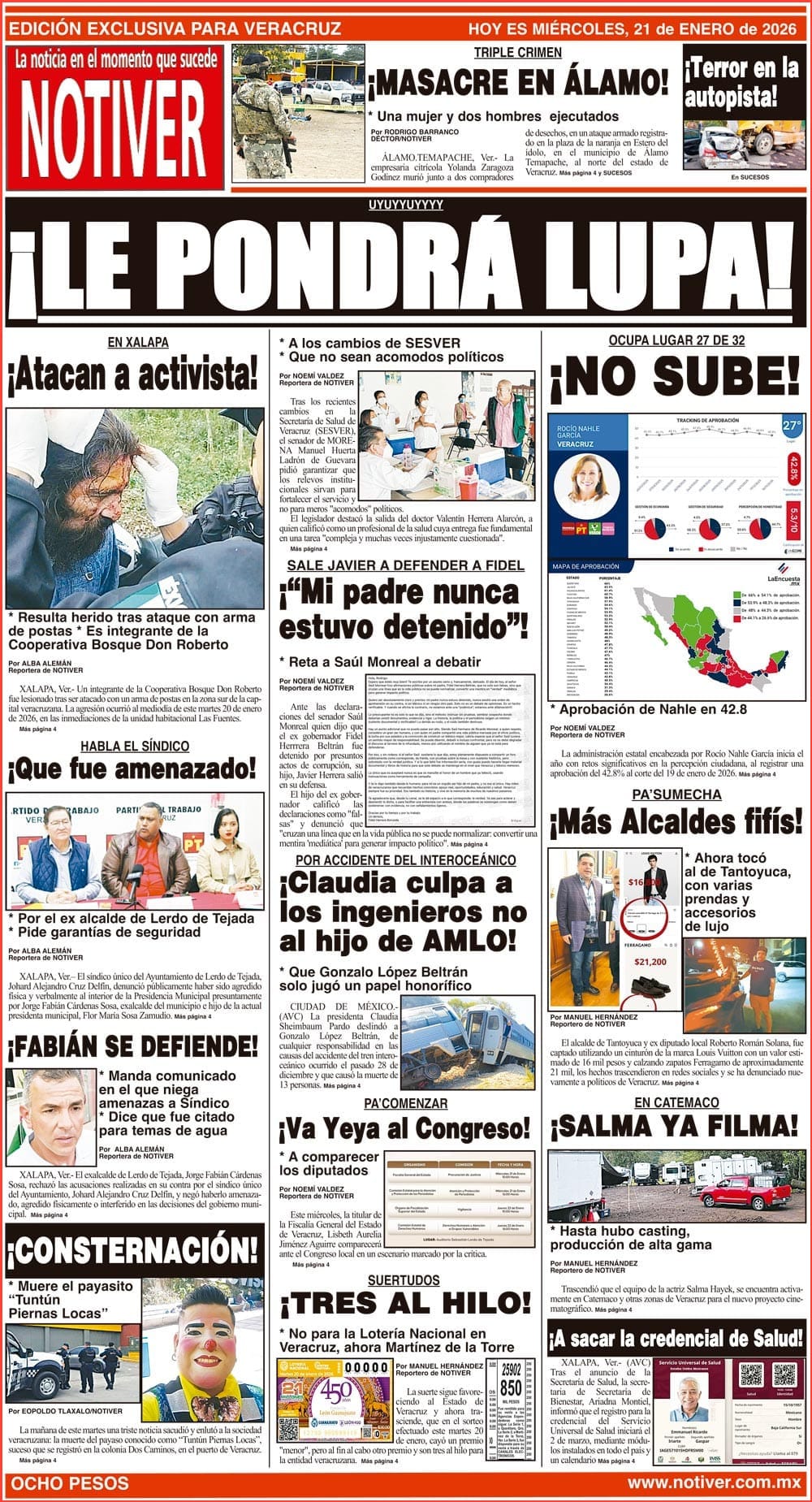 PRIMERA LA PORTADA - MIÉRCOLES 21 DE ENERO 2026 UYUYYUYYYY - *A LOS CAMBIOS DE SESVER *QUE NO SEAN ACOMODOS POLÍTICOS 21 enero 2026