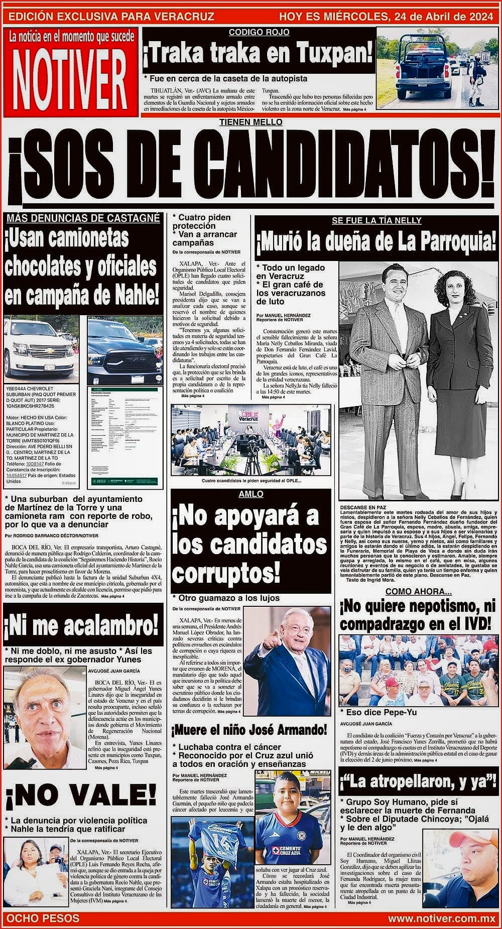 PRIMERA LA PORTADA - MIÉRCOLES 24 DE ABRIL 2024 TIENEN MELLO - * CUATRO PIDEN PROTECCIÓN * VAN A ARRANCAR CAMPAÑAS 24 abril 2024