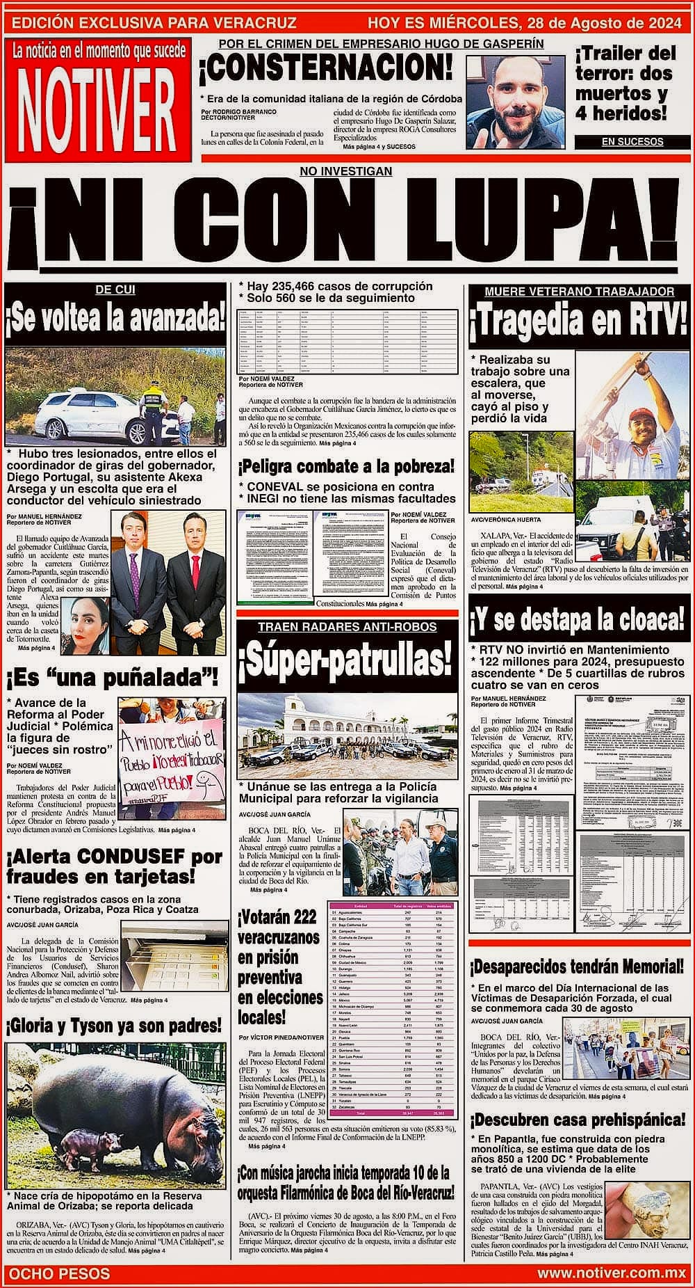 PRIMERA LA PORTADA - MIÉRCOLES 28 DE AGOSTO 2024 NO INVESTIGAN - *HAY 235,466 CASOS DE CORRUPCIÓN *SOLO 560 SE LE DA SEGUIMIENTO 28 agosto 2024