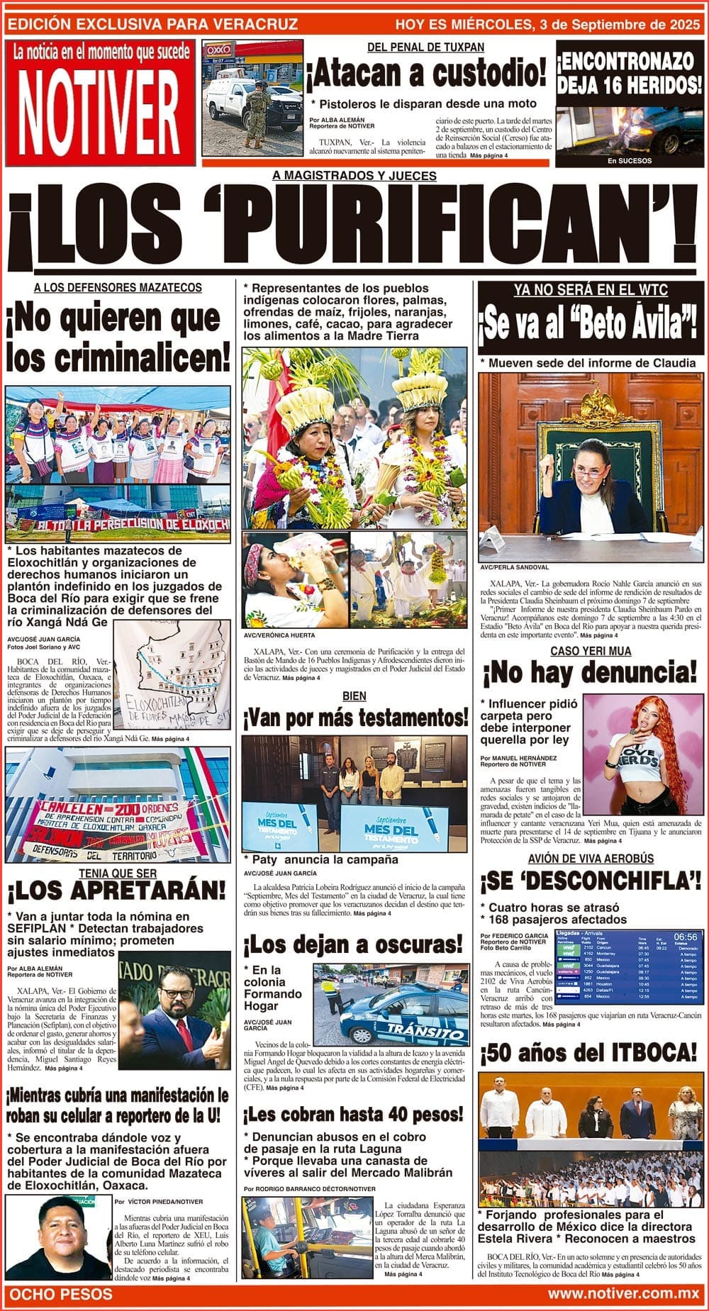 PRIMERA LA PORTADA - MIÉRCOLES 3 DE SEPTIEMBRE 2025 A MAGISTRADOS Y JUECES - *REPRESENTANTES DE LOS PUEBLOS INDÍGENAS COLOCARON FLORES, PALMAS, OFRENDAS DE MAÍZ, FRIJOLES, NARANJAS, LIMONES, CAFÉ, CACAO, PARA AGRADECER LOS ALIMENTOS A LA MADRE TIERRA 3 septiembre 2025