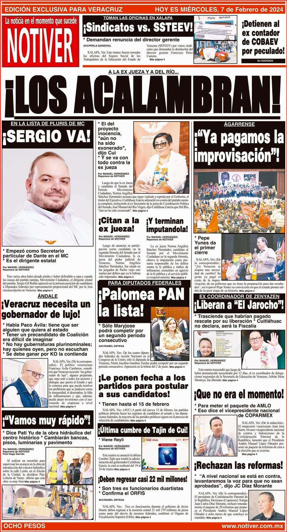 PRIMERA LA PORTADA - MIÉRCOLES 7 DE FEBRERO 2024 A LA EX JUEZA Y A DEL RÍO... - * EL DEL PROYECTO INOCENCIA, "AÚN NO HA SIDO EXONERADO", DIJO CUI * Y SE VA CON TODO CONTRA LA EX JUEZA 7 febrero 2024 Y LOS ANUNCIOS...Cotice su Anuncio Su Correo Electrónico: Texto: Enviar