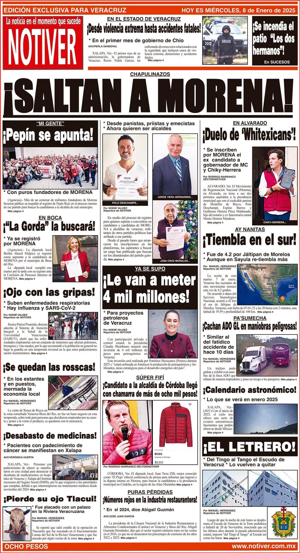 PRIMERA LA PORTADA - MIÉRCOLES 8 DE ENERO 2025 CHAPULINAZOS - *DESDE PANISTAS, PRIISTAS Y EMECISTAS *AHORA QUIEREN SER ALCALDES 8 enero 2025