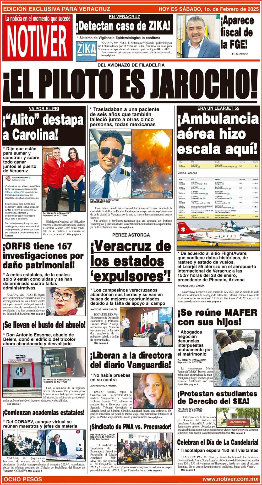 PRIMERA LA PORTADA - SÁBADO 1 DE FEBRERO 2025 DEL AVIONAZO DE FILADELFIA - *TRASLADABAN A UNA PACIENTE DE SEIS AÑOS QUE TAMBIÉN FALLECIÓ JUNTO A OTRAS CINCO PERSONAS, TODAS MEXICANAS 1 febrero 2025