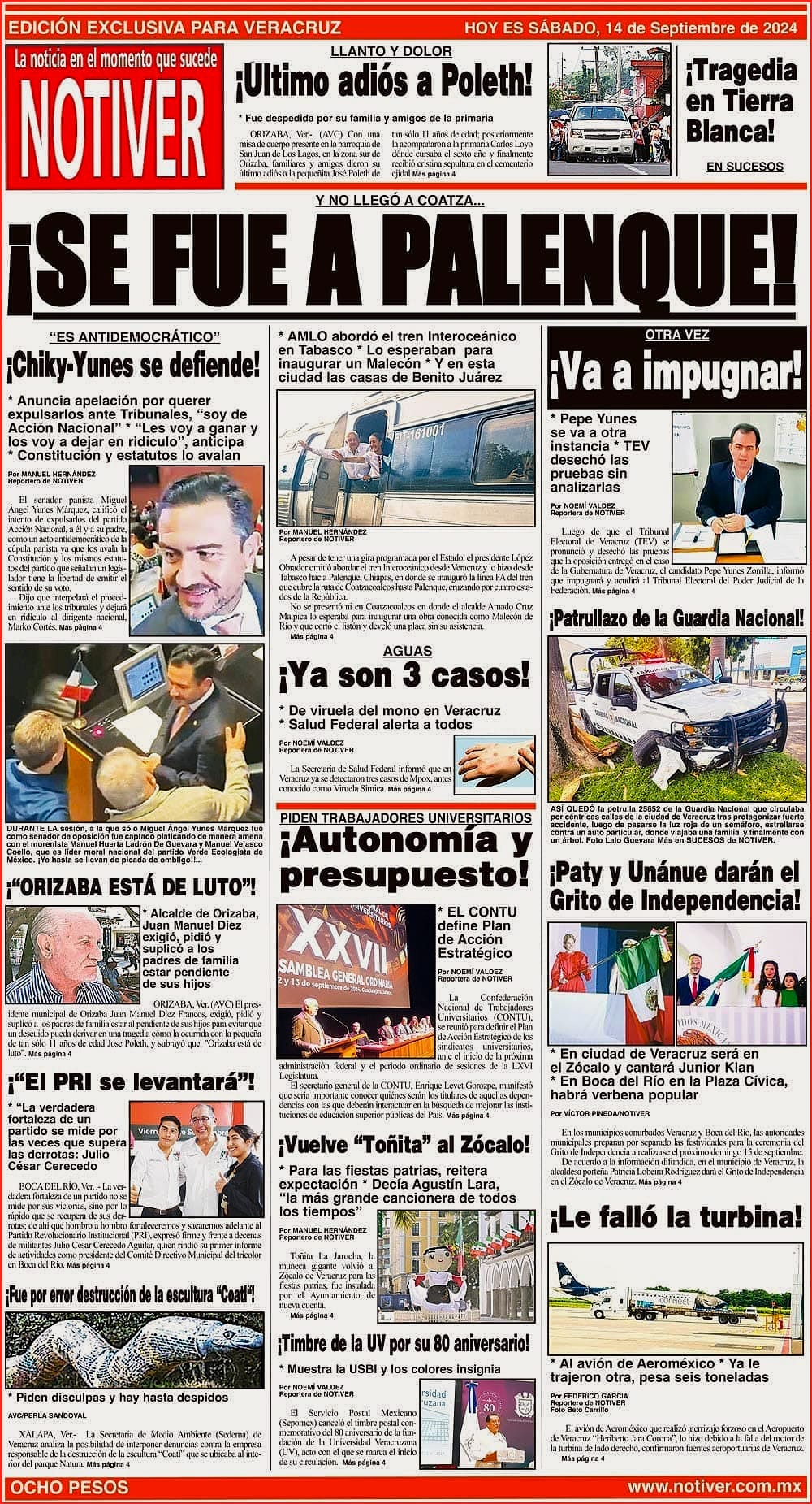 LA PORTADA - SÁBADO 14 DE SEPTIEMBRE 2024