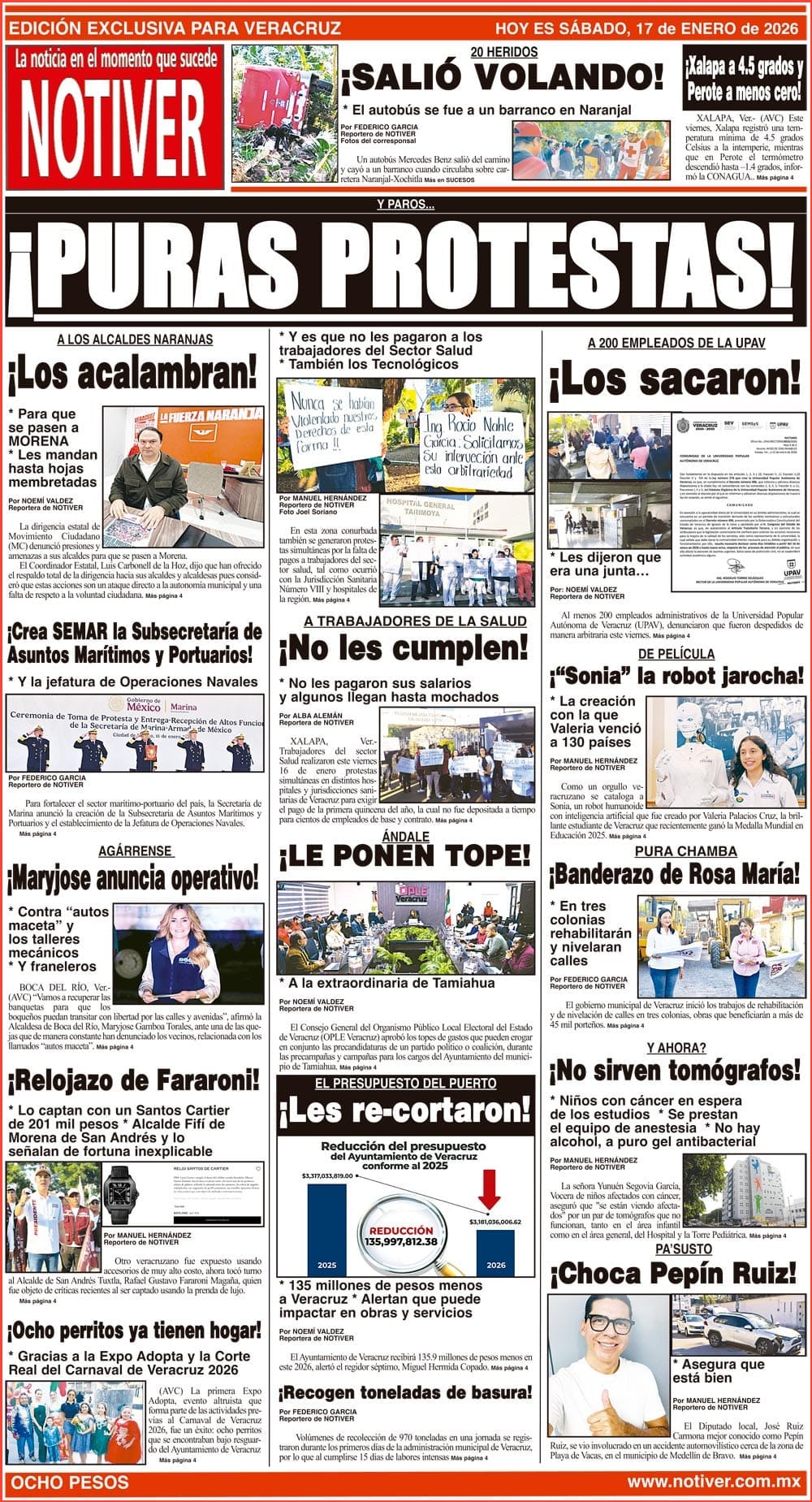 PRIMERA LA PORTADA - SÁBADO 17 DE ENERO 2026 Y PAROS... - *Y ES QUE NO LES PAGARON A LOS TRABAJADORES DEL SECTOR SALUD *TAMBIÉN LOS TECNOLÓGICOS 17 enero 2026