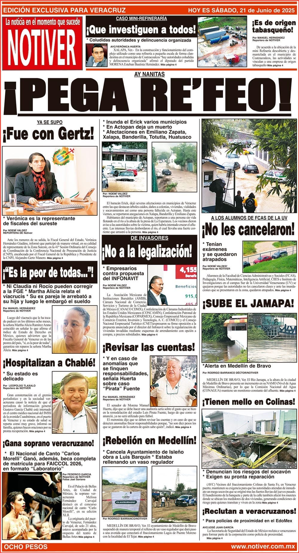 PRIMERA LA PORTADA - SÁBADO 21 DE JUNIO 2025 AY NANITAS - *INUNDA EL ERICK VARIOS MUNICIPIOS *EN ACTOPAN DEJA UN MUERTO *AFECTACIONES EN EMILIANO ZAPATA, XALAPA, BANDERILLA, TOTUTLA, HUATUSCO 21 junio 2025