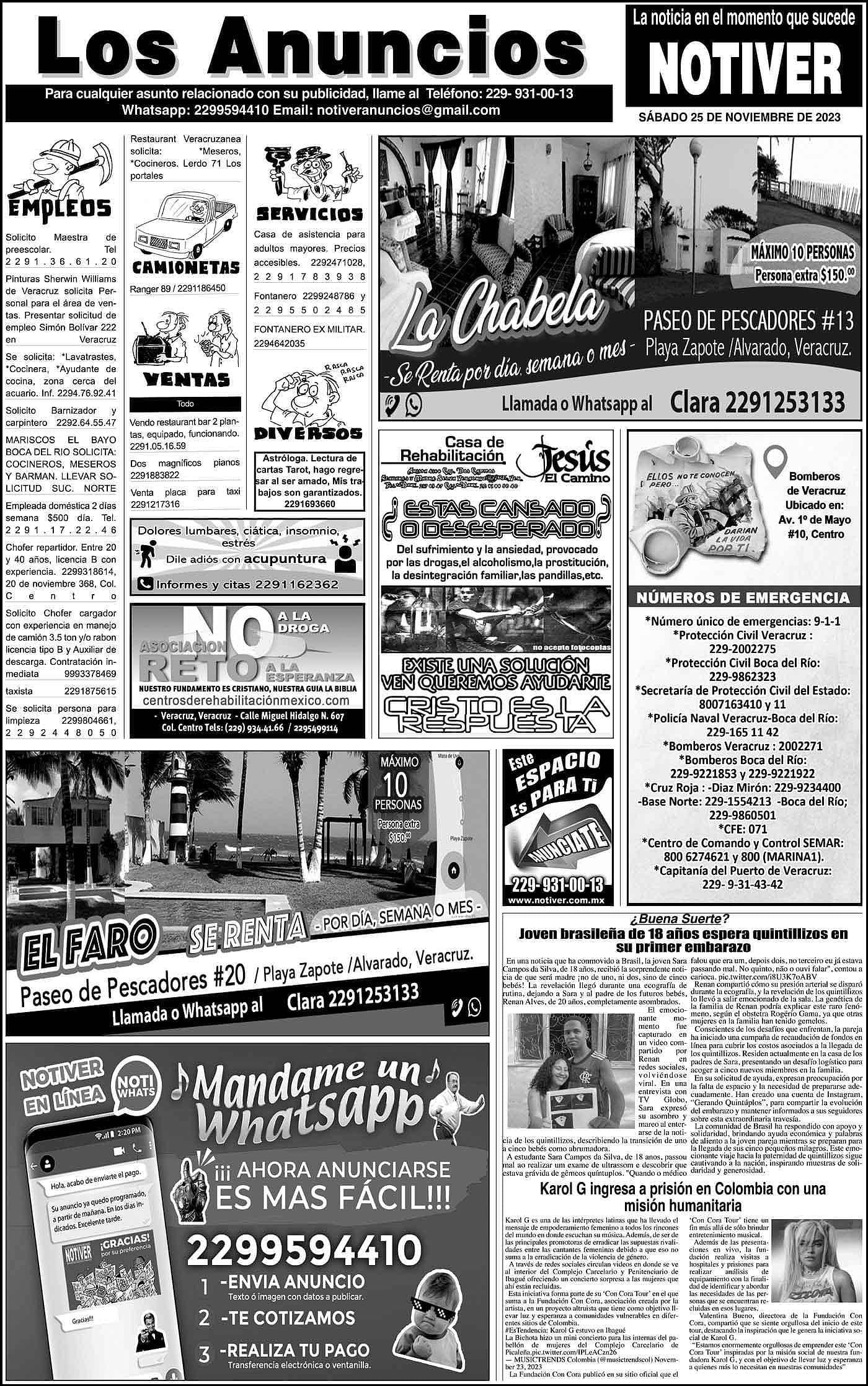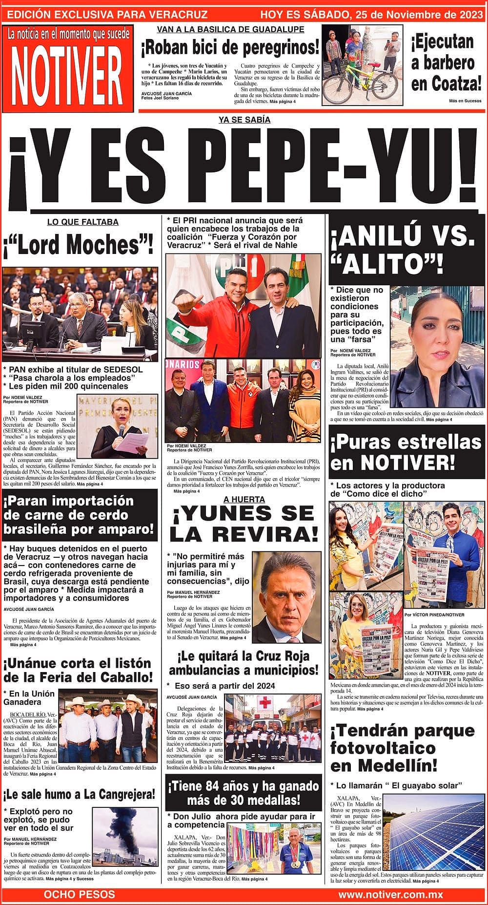 PRIMERA LA PORTADA - SÁBADO, 25 DE NOVIEMBRE 2023 YA SE SABÍA - *EL PRI NACIONAL ANUNCIA QUE SERÁ QUIEN ENCABECE LOS TRABAJOS DE LA COALICIÓN “FUERZA Y CORAZÓN POR VERACRUZ” * SERÁ EL RIVAL DE NAHLE 25 noviembre 2023 Y LOS ANUNCIOS...Cotice su Anuncio Su Correo Electrónico: Texto: Enviar
