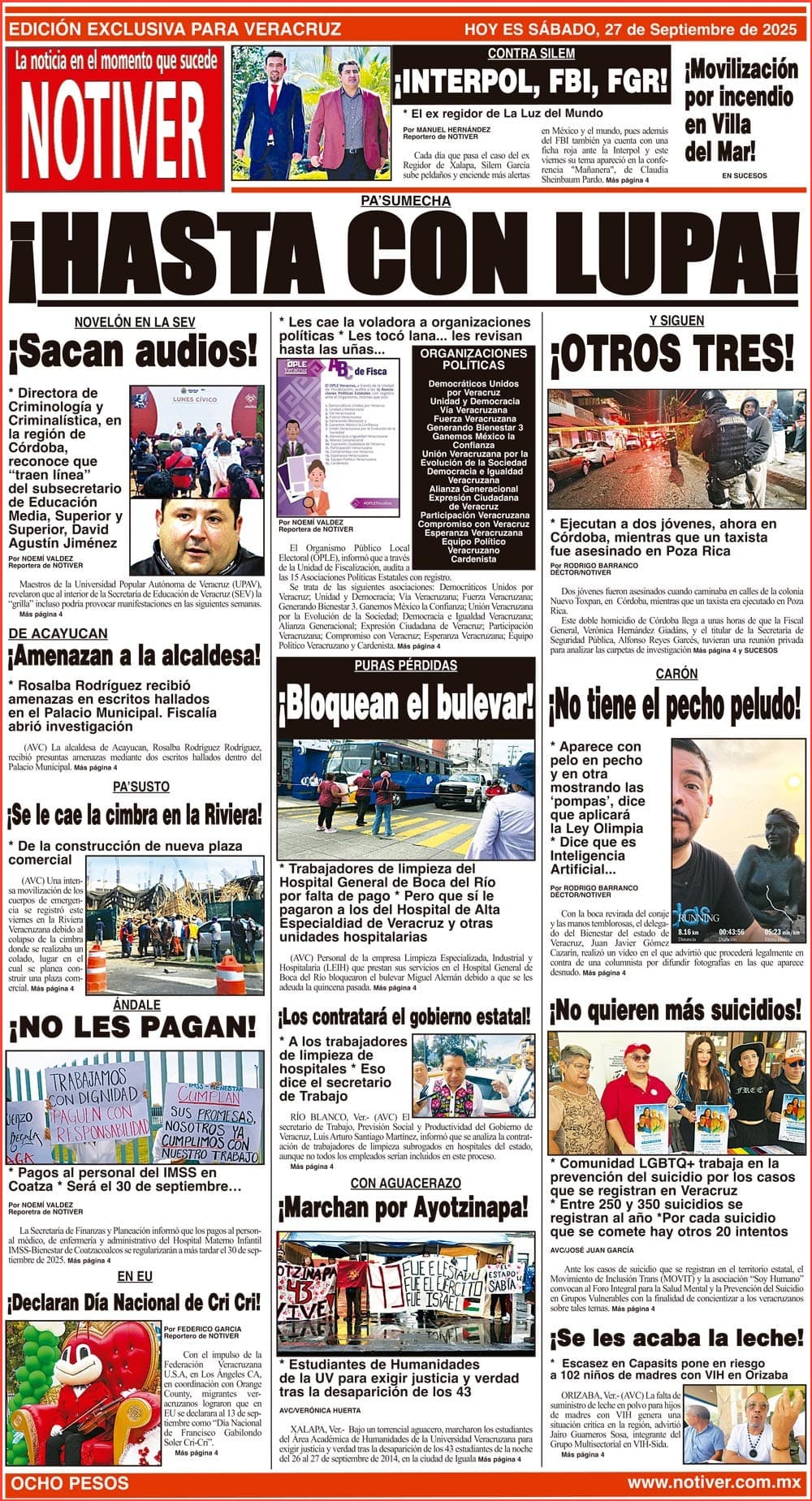 PRIMERA LA PORTADA - SÁBADO 27 DE SEPTIEMBRE 2025 PA’SUMECHA - *LES CAE LA VOLADORA A ORGANIZACIONES POLÍTICAS *LES TOCÓ LANA... LES REVISAN HASTA LAS UÑAS... 27 septiembre 2025
