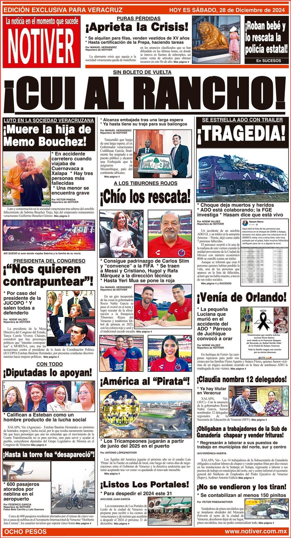 PRIMERA LA PORTADA - SÁBADO 28 DE DICIEMBRE 2024 SIN BOLETO DE VUELTA - *ALCANZA EMBAJADA TRAS UNA LARGA ESPERA *YA HASTA TIENE SU TRAJE PARA SUS BAILONGOS 28 diciembre 2024