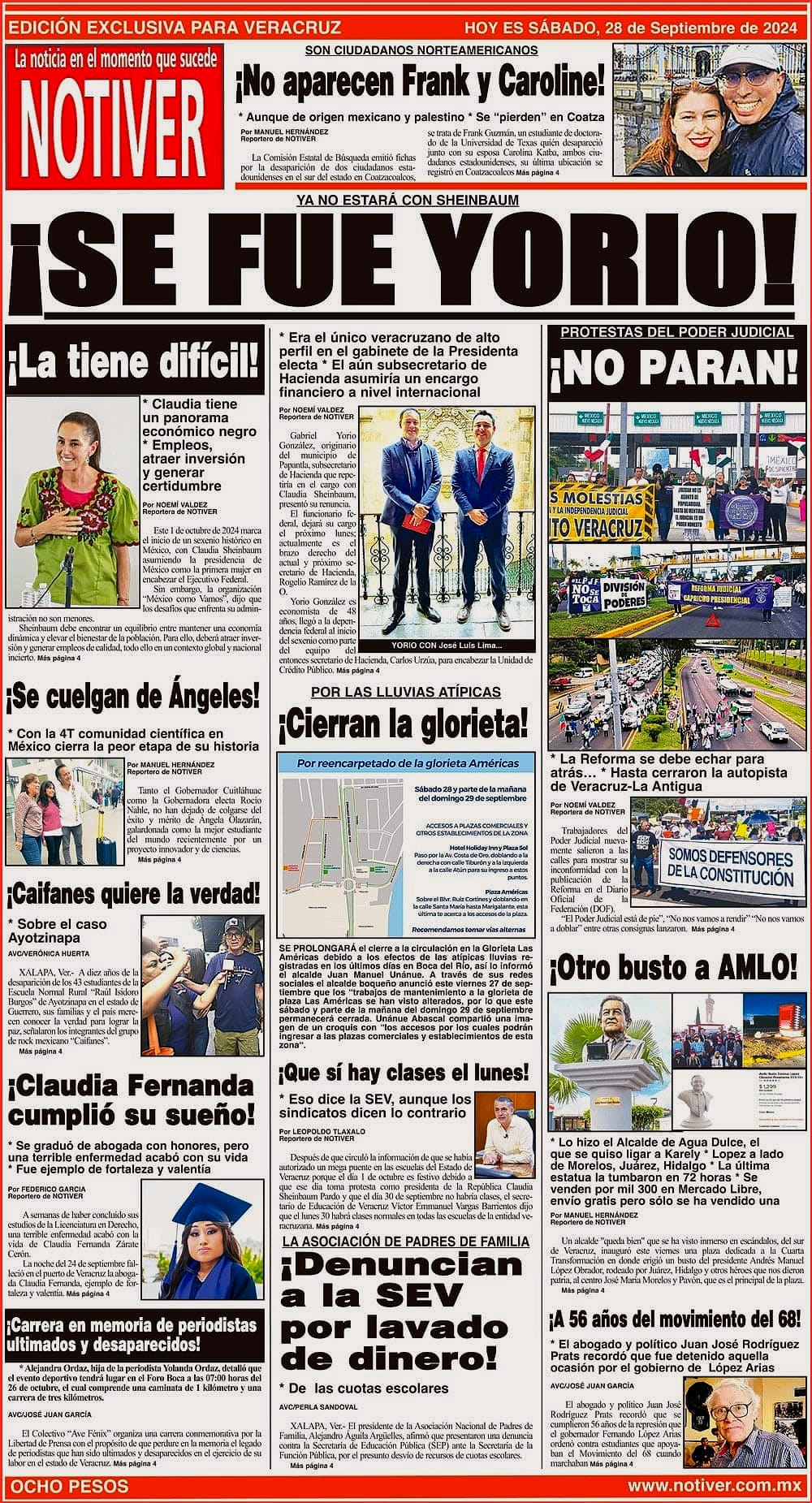 LA PORTADA - SÁBADO 28 DE SEPTIEMBRE 2024