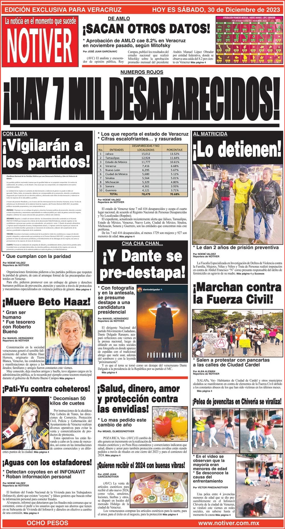PRIMERA LA PORTADA - SÁBADO 30 DE DICIEMBRE 2023 NUMEROS ROJOS - * LOS QUE REPORTA EL ESTADO DE VERACRUZ * CIFRAS ESCALOFRIANTES… Y RASURADAS 30 diciembre 2023 Y LOS ANUNCIOS...Cotice su Anuncio Su Correo Electrónico: Texto: Enviar