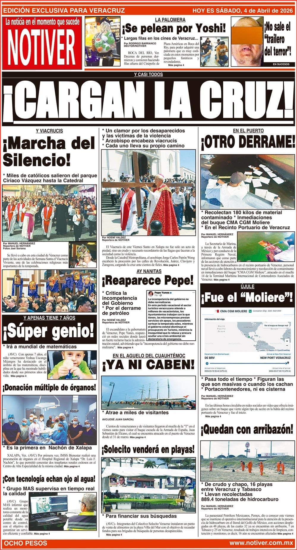 PRIMERA LA PORTADA - SÁBADO 4 DE ABRIL 2026 Y CASI TODOS - *UN CLAMOR POR LOS DESAPARECIDOS Y LAS VÍCTIMAS DE LA VIOLENCIA *ARZOBISPO ENCABEZA VIACRUCIS *CADA UNO LLEVA SU PROPIO CAMINO 4 abril 2026